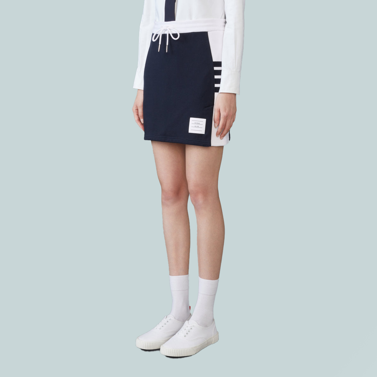 Drawing inspiration from Thom Browne's sporty heritage, this ultra-comfortable skirt is perfect for active days or relaxing in style. Made from breathable cotton fabric.