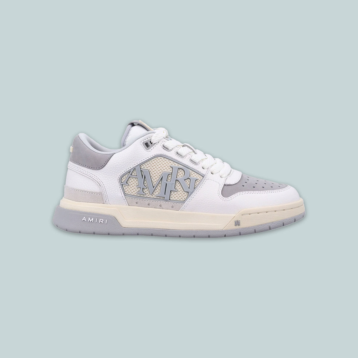 Pre-Fall 2025 presents the house's interpretation of the timeless tennis sneaker in new seasonal hues. The Classic Low is crafted on a rubber sole with leather upper and central panels of molded rubber mesh framing the AMIRI staggered logo.