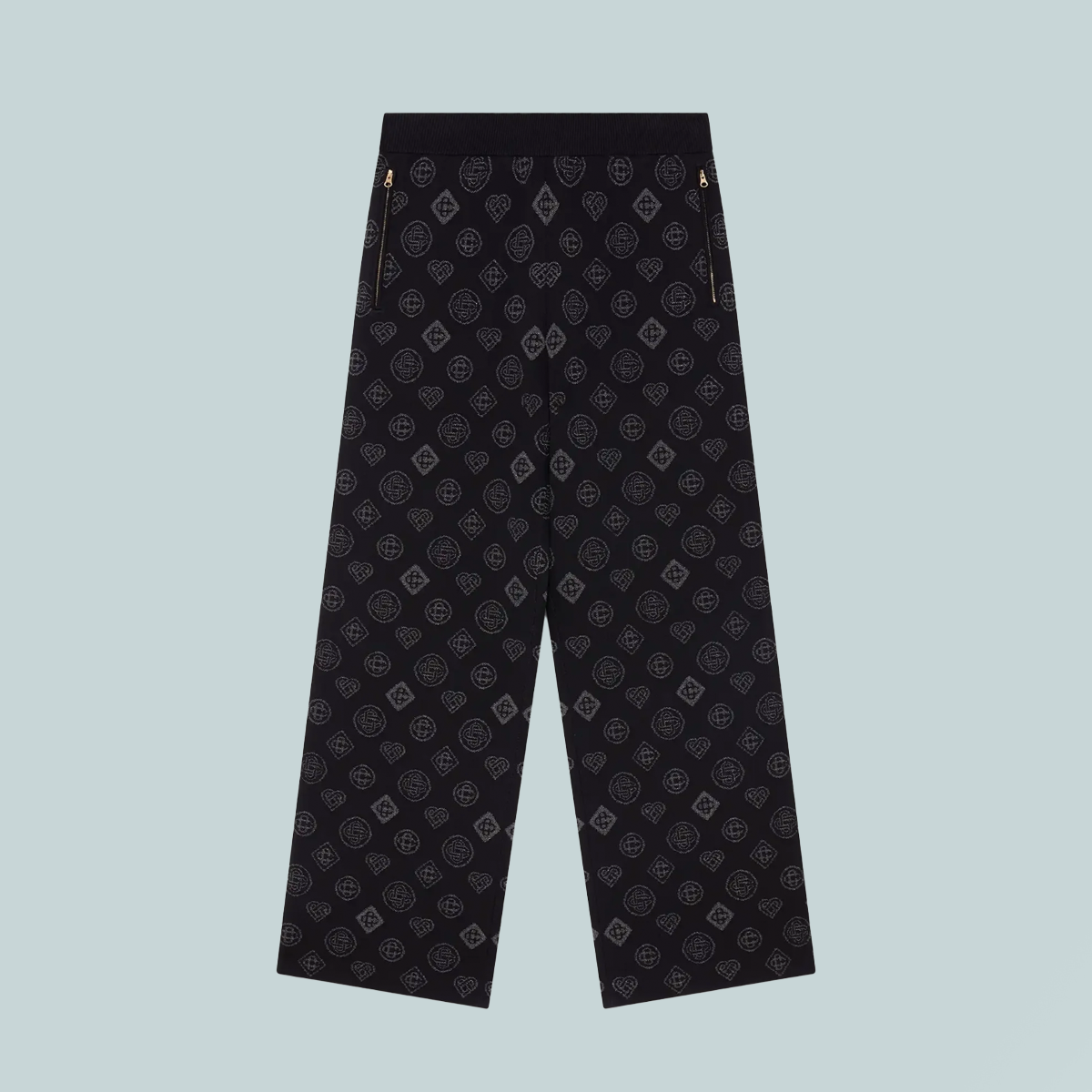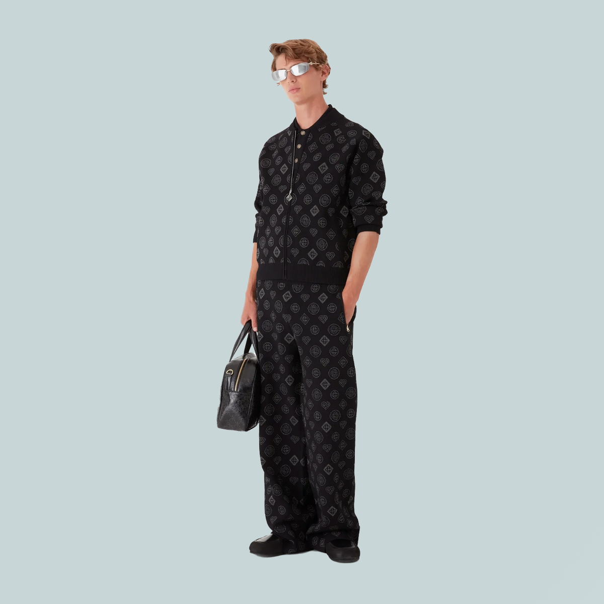 The monogram jacquard trousers are a straight-leg design featuring the house's Honeydew logo repeat artwork. This repeat differs from our other monograms, as it combines unique shapes to form a cohesive pattern. It is more of an icon-based design. Completed with an elasticised waistband, and pockets with zip closure.