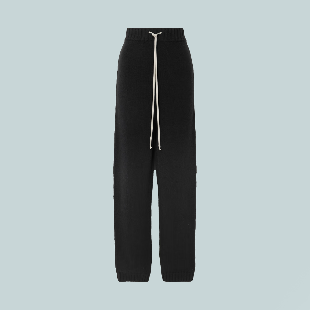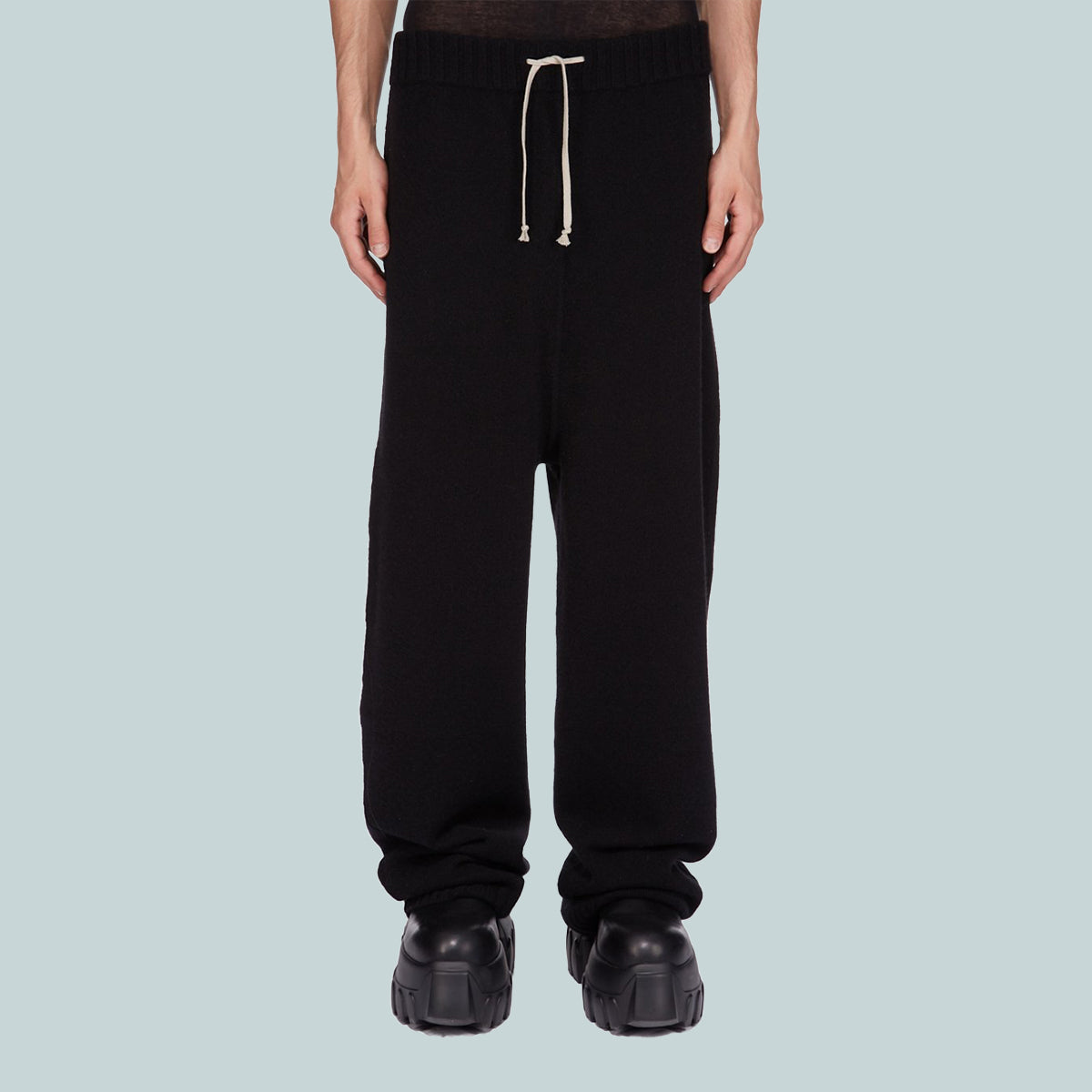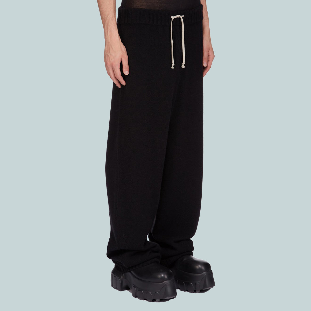 rick owens ss25 hollywood track in black las palmas cashmere knit