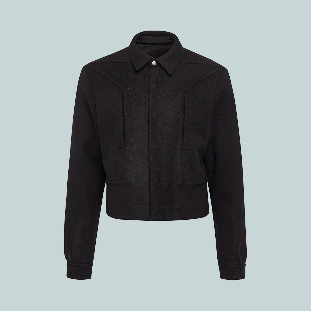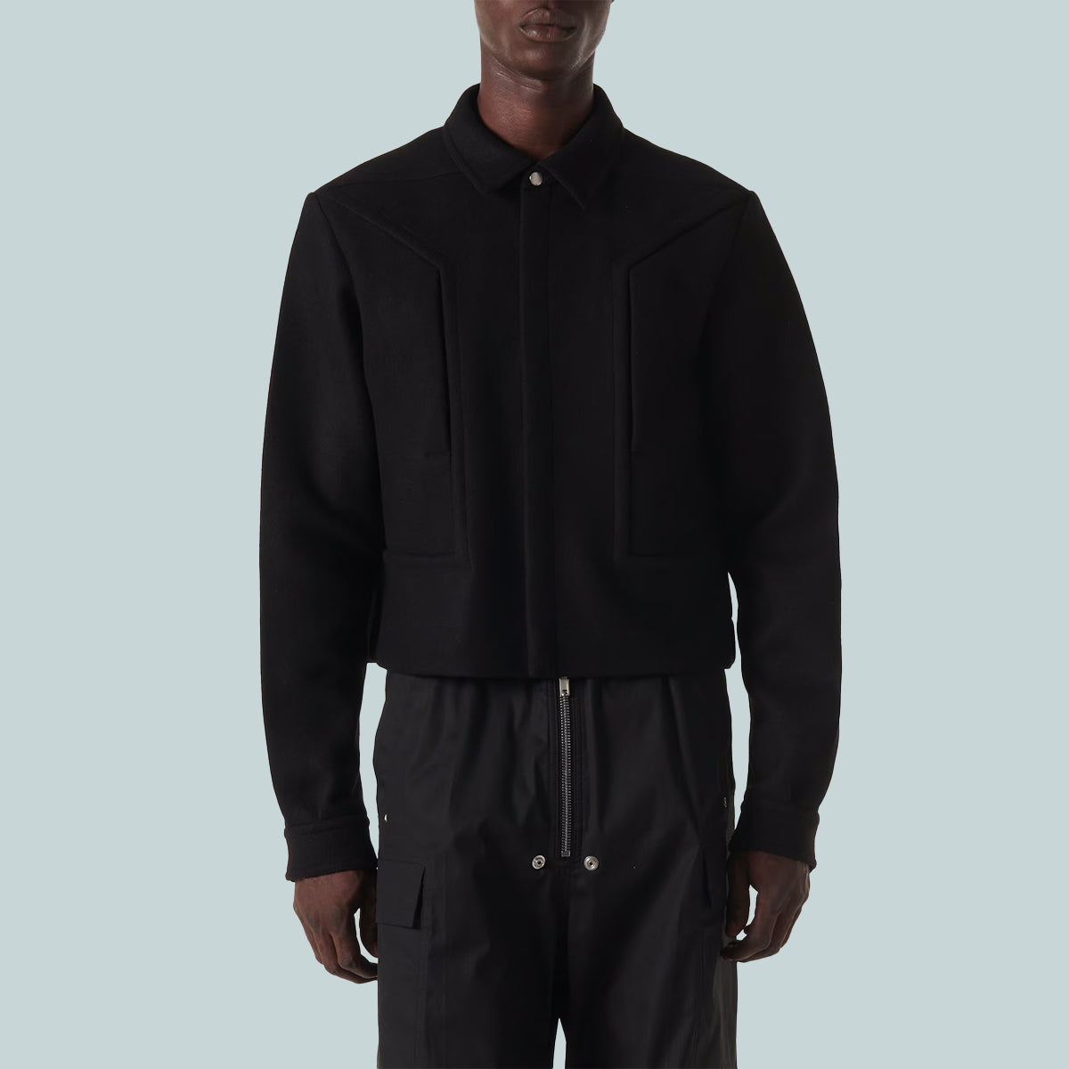 Rick Owens FW24 Porterville Alice strobe shirt in black mediumweight wool
