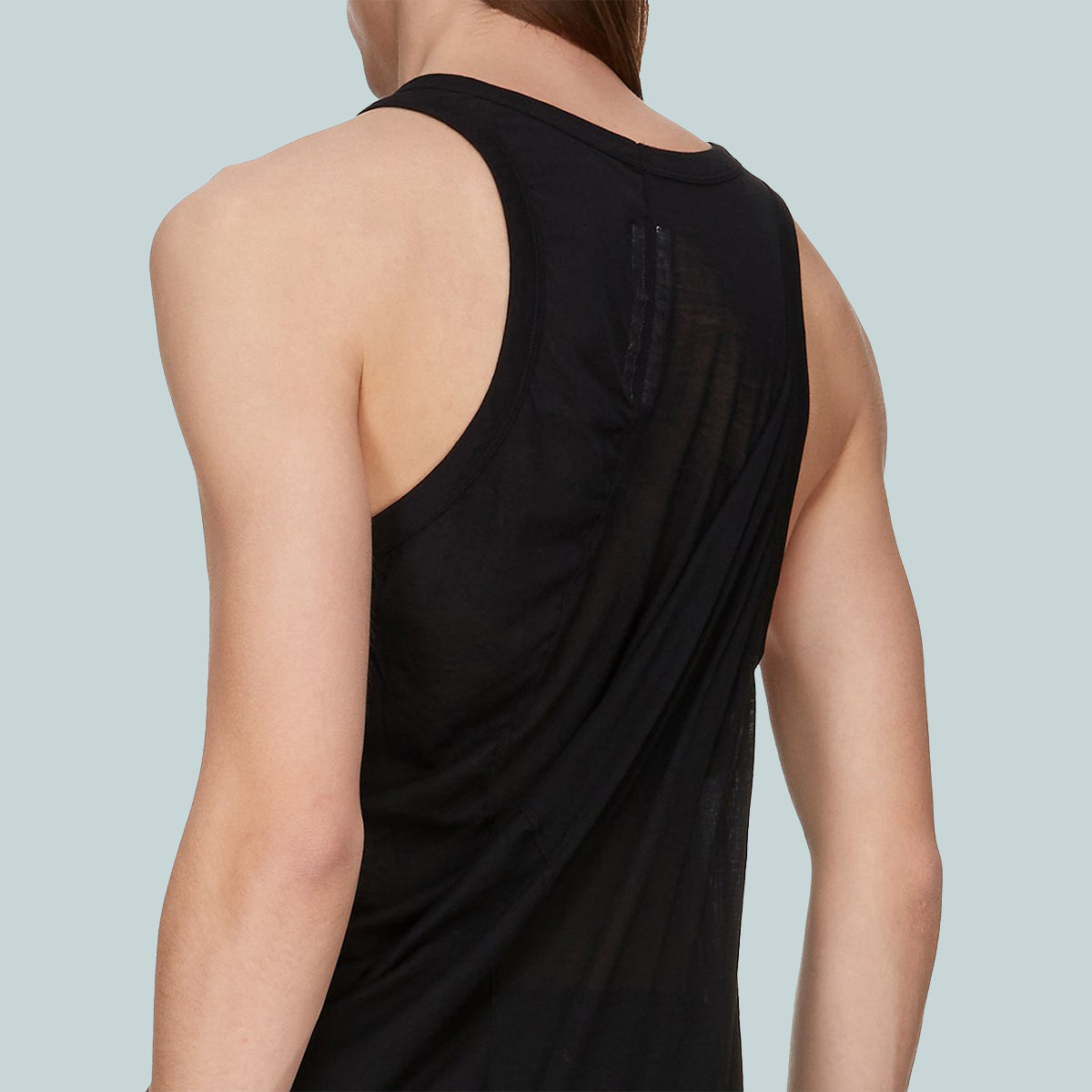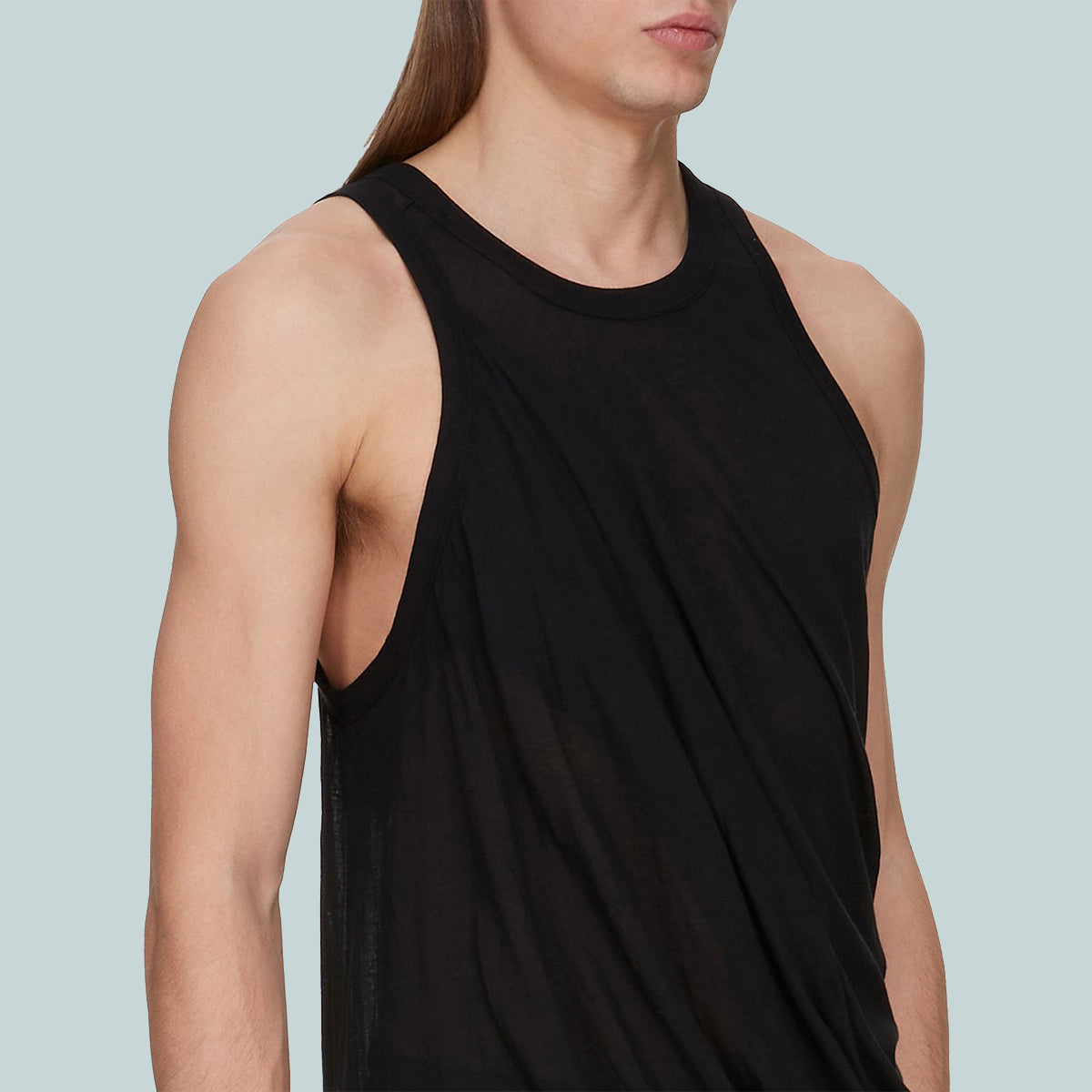 rick owens ss25 hollywood anthem tank in black viscose crepe jersey