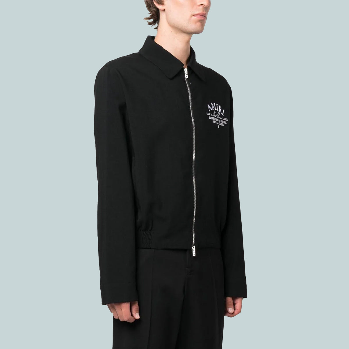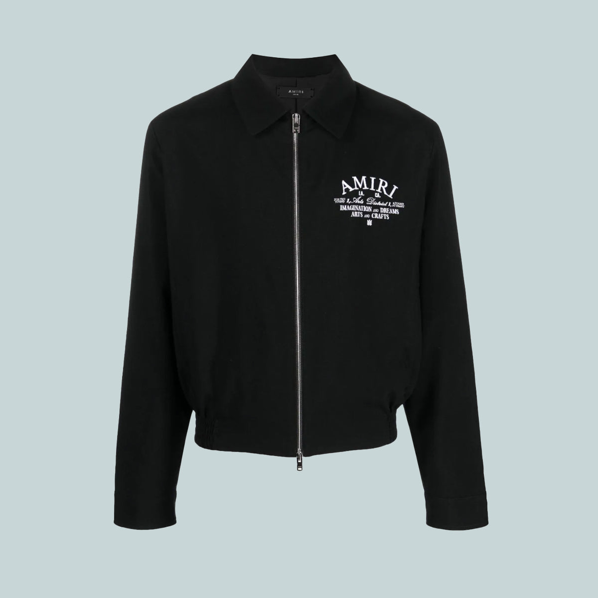 This blouson jacket celebrates Amiri's downtown la roots and the creative spirit of the city’s arts district. Crafted from a sturdy yet lightweight wool blend, this jacket is embroidered with house logo graphics on the back and chest and features front zip closure with custom Amiri hardware.