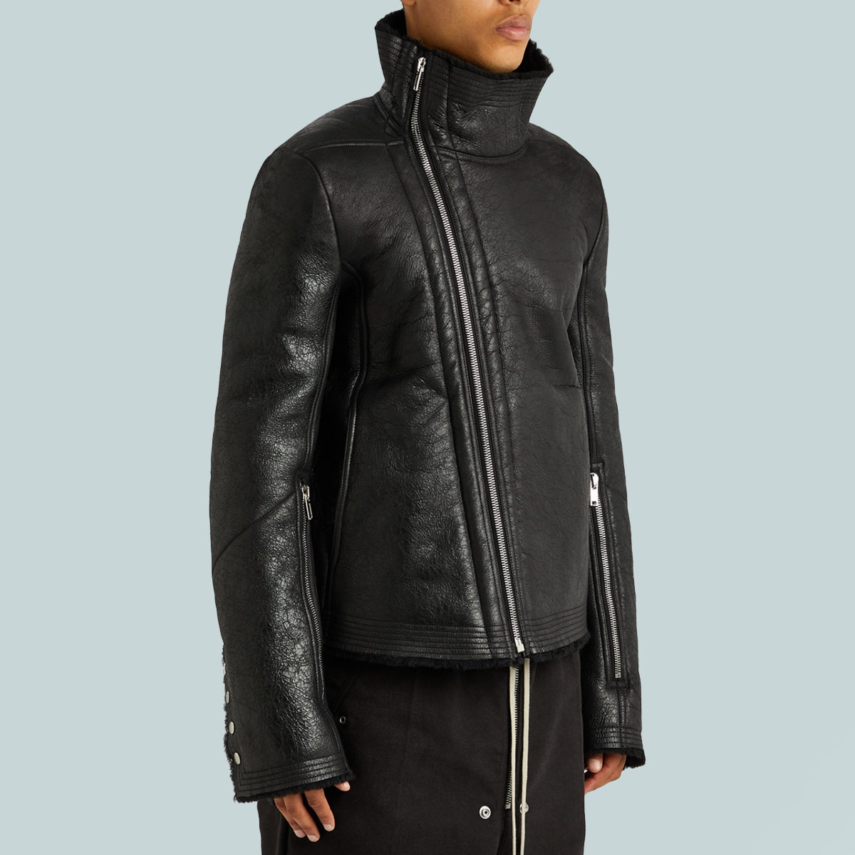 This heavyweight shearling lamb leather has a waxy and matte nappa finish and a soft curly fur.