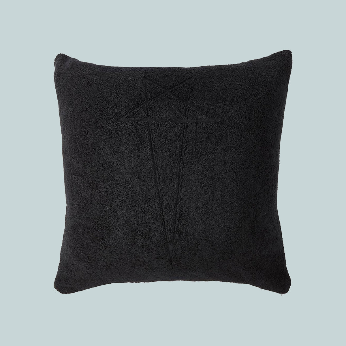 this heavyweight cotton beach pillow is made using a 600g fabric. it has a soft, spongy hand feel and a pentagram motif.