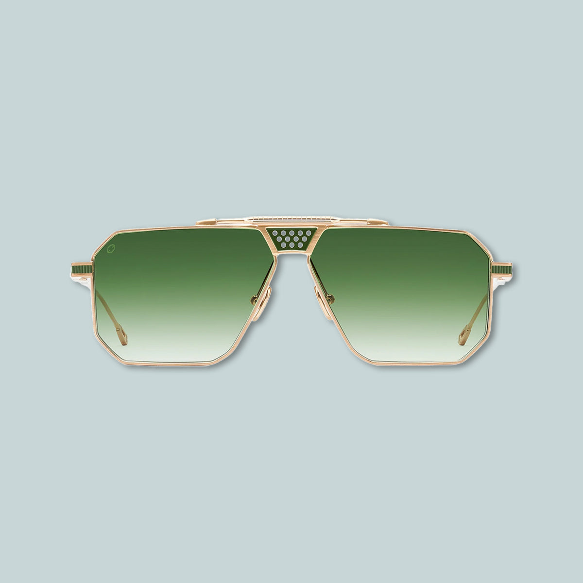 Titanium Construction featuring integrated aerodynamic technology with state of the art lines. Accented with Titanium two-tone grilles and fender vector fins outfitted on the mid beta flex temples. Modular Monoblock Connections finished in two-tone and ordained with our signature details and hidden rim lock. Custom 4mm Polished and Tumbled Rimstock.
