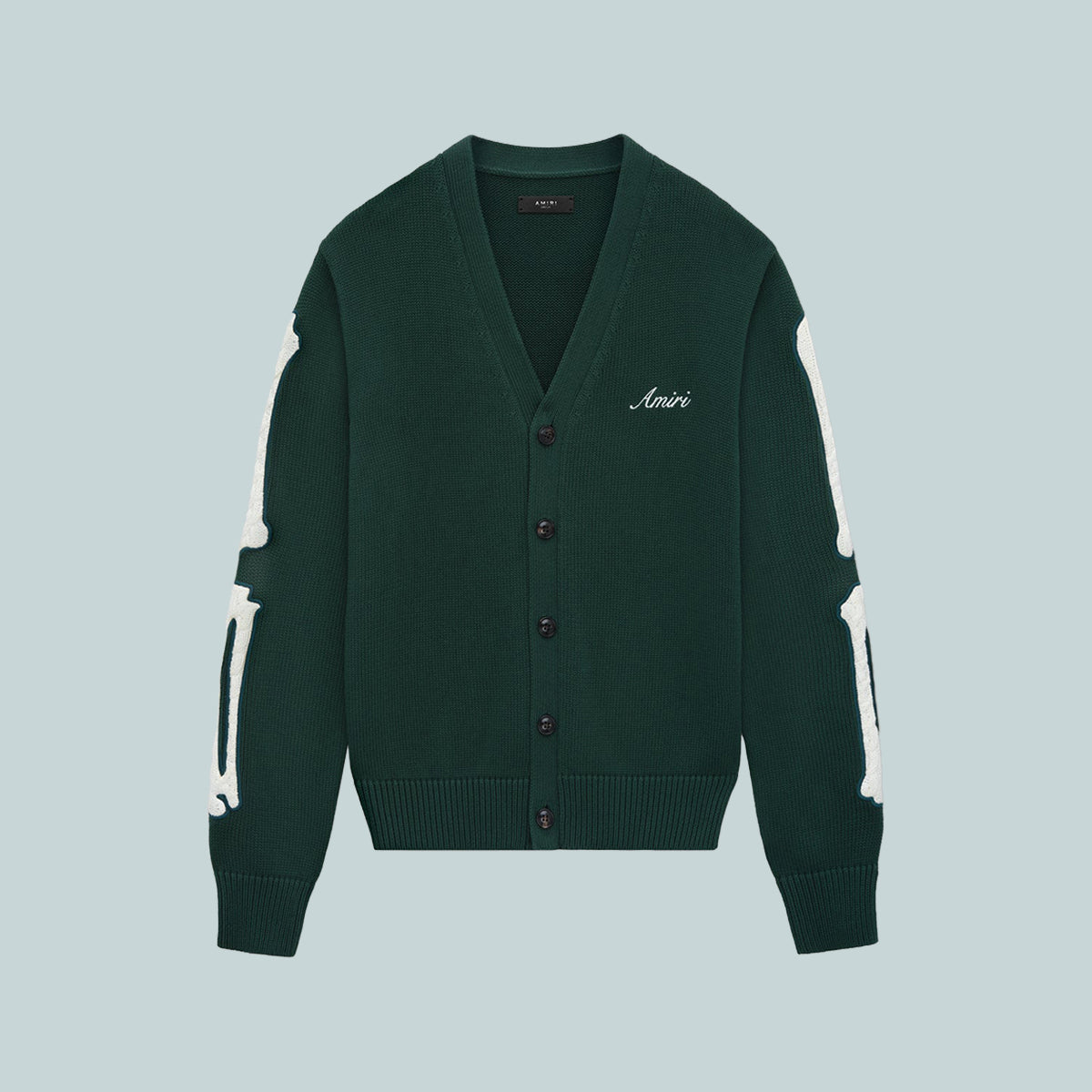 The Pre-Spring 2025 menswear collection reintroduces house icons in seasonal colors. Crafted in knit Egyptian cotton, the Bones Cardigan features the house's signature bones motif and embroidered script logo.