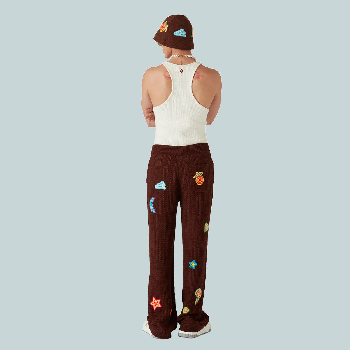 The boucle rib vest is a sleeveless textured design crafted from a boucle cotton blend fabric. Completed with a scoop neck and a racer back with the house's signature diamond logo.