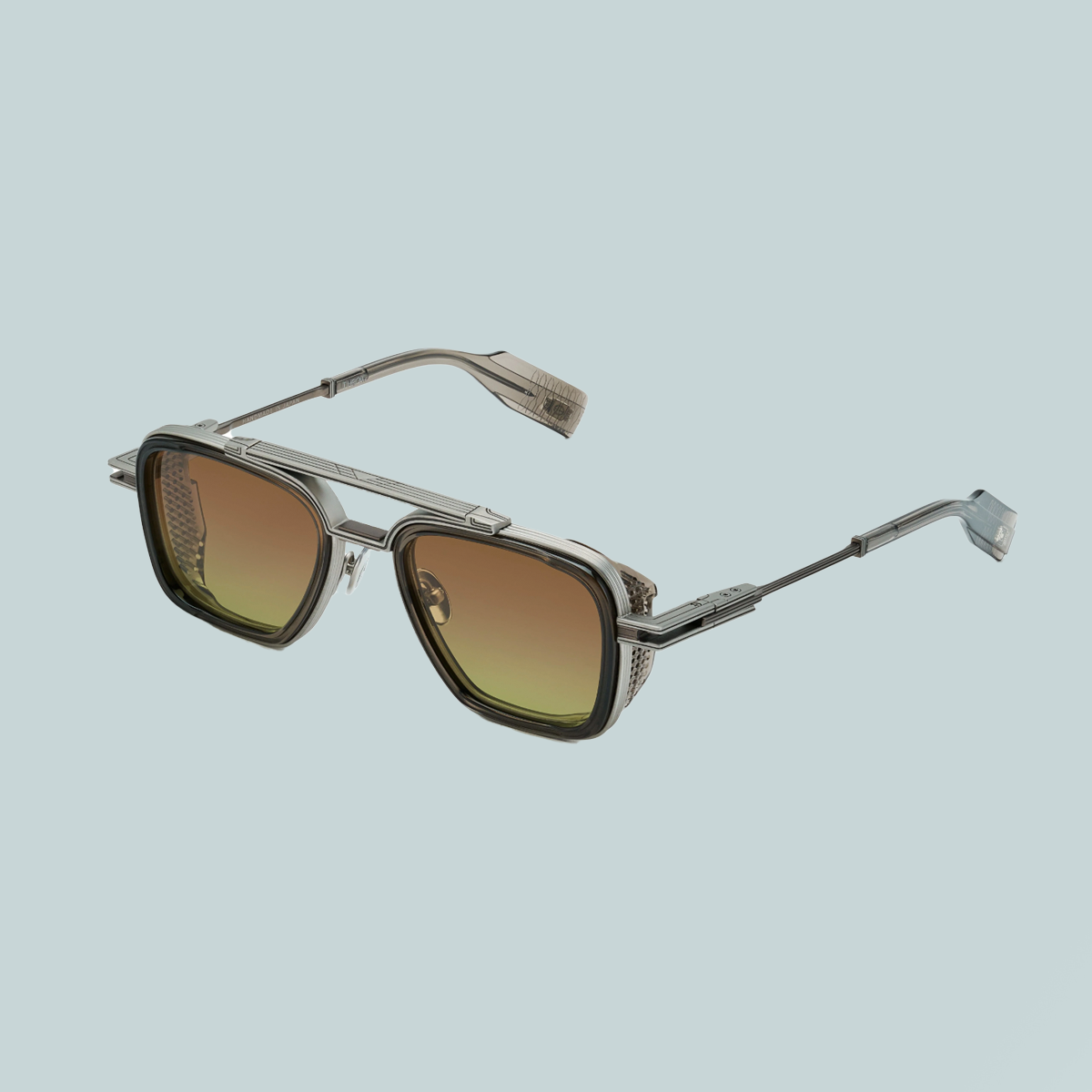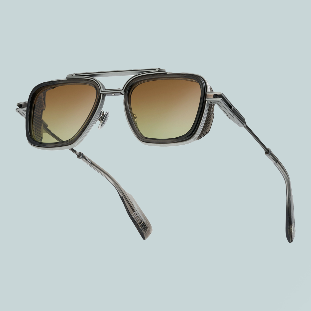 Combination construction using titanium and acetate, crafted through a cotton extrusion method.