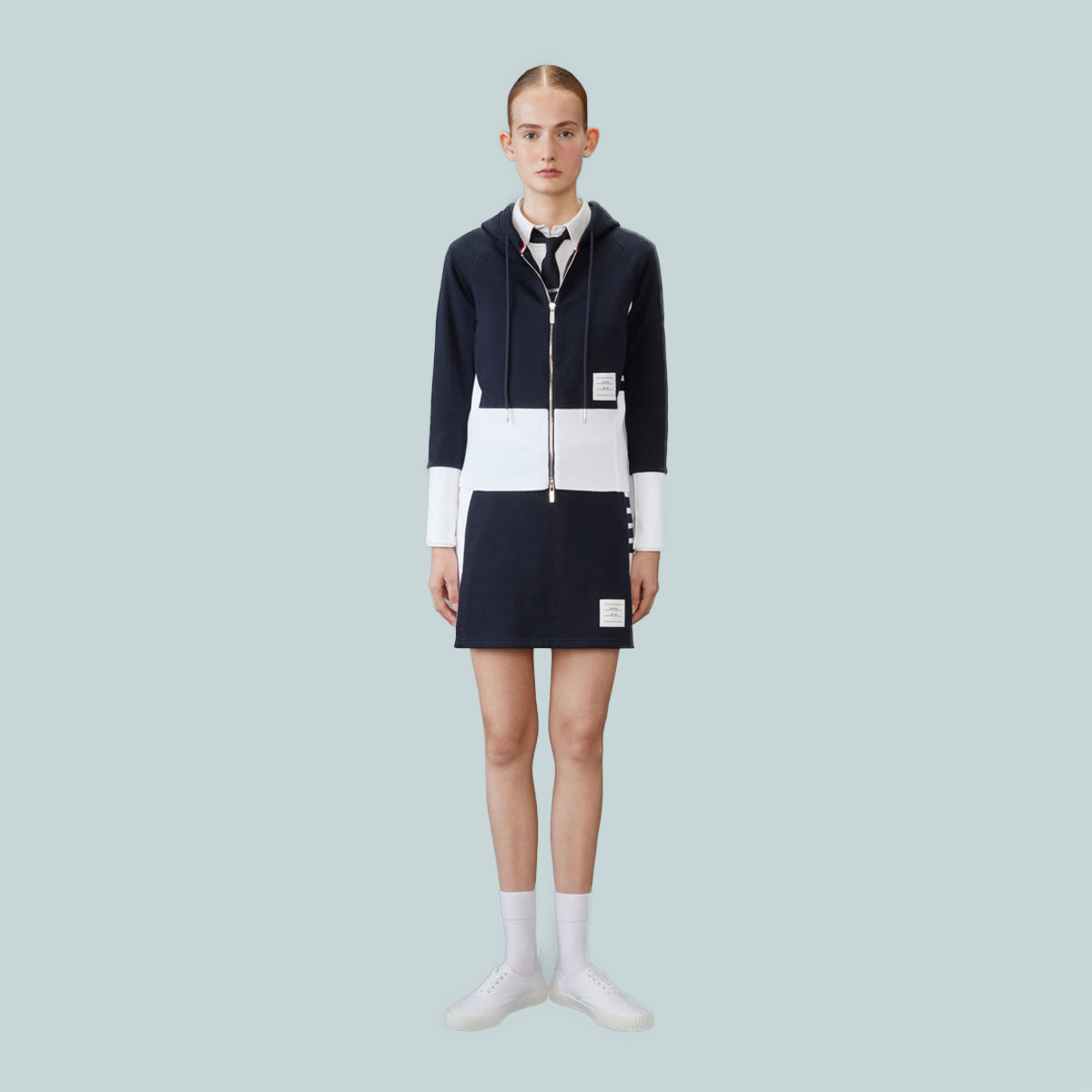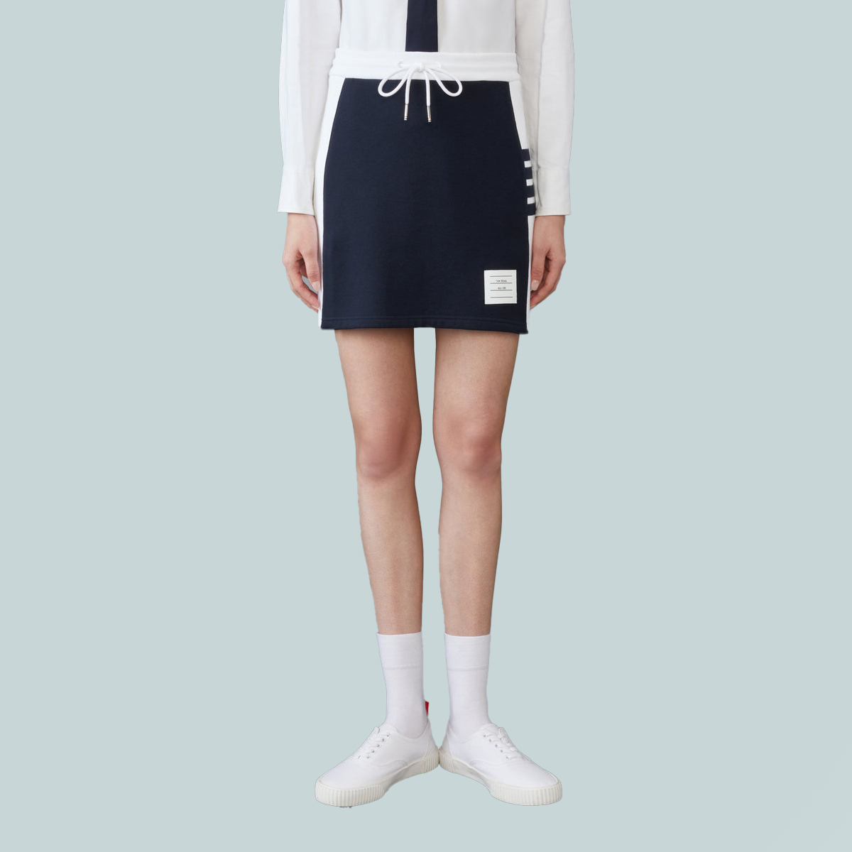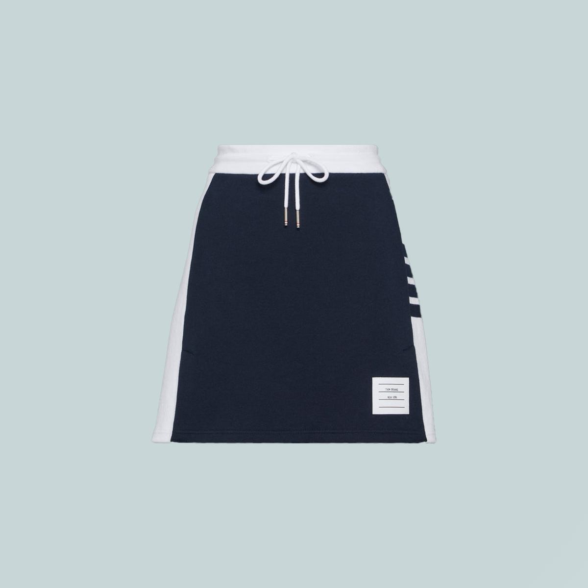 Drawing inspiration from Thom Browne's sporty heritage, this ultra-comfortable skirt is perfect for active days or relaxing in style. Made from breathable cotton fabric.