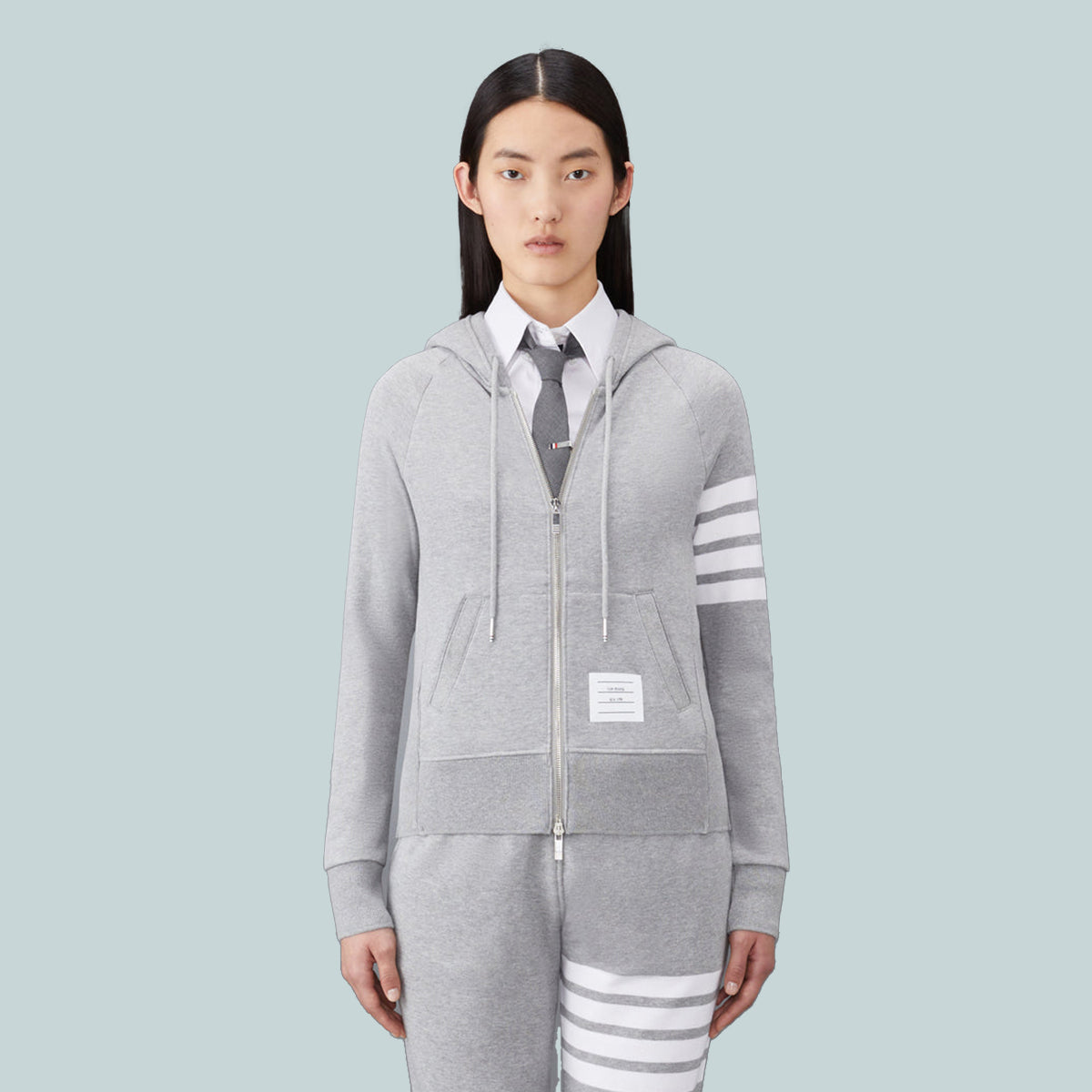 Classic Loopback 4-Bar Full Zip Hoodie Grey