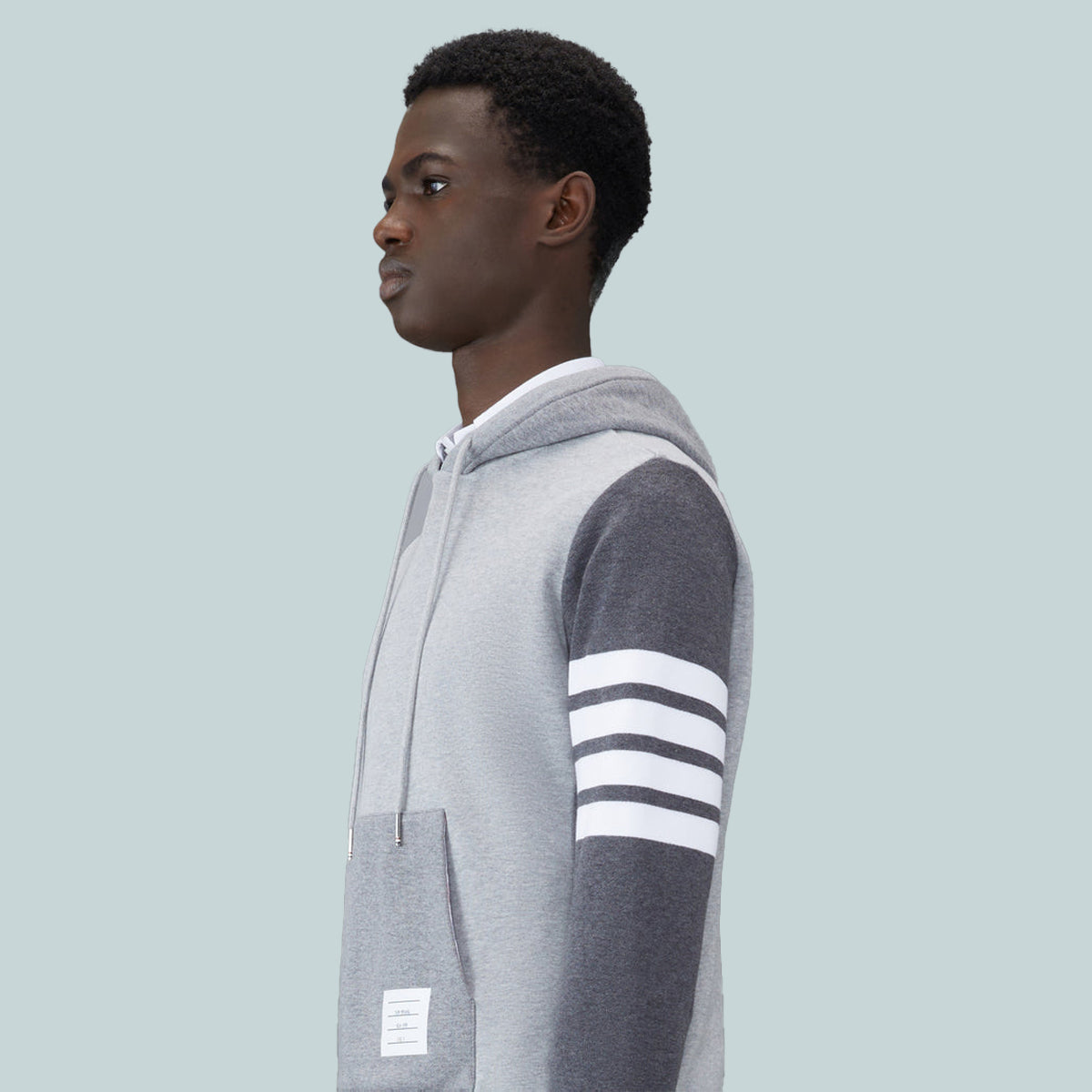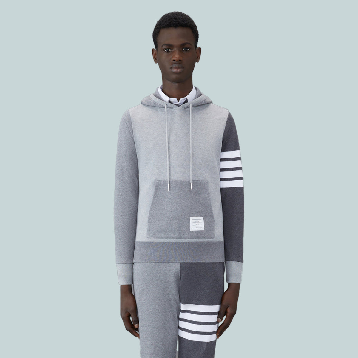 Leisurewear made artful. Our Classic Loopback 4-Bar Hoodie is adorned with our iconic 4-Bar detailing emulated after varsity stripes.