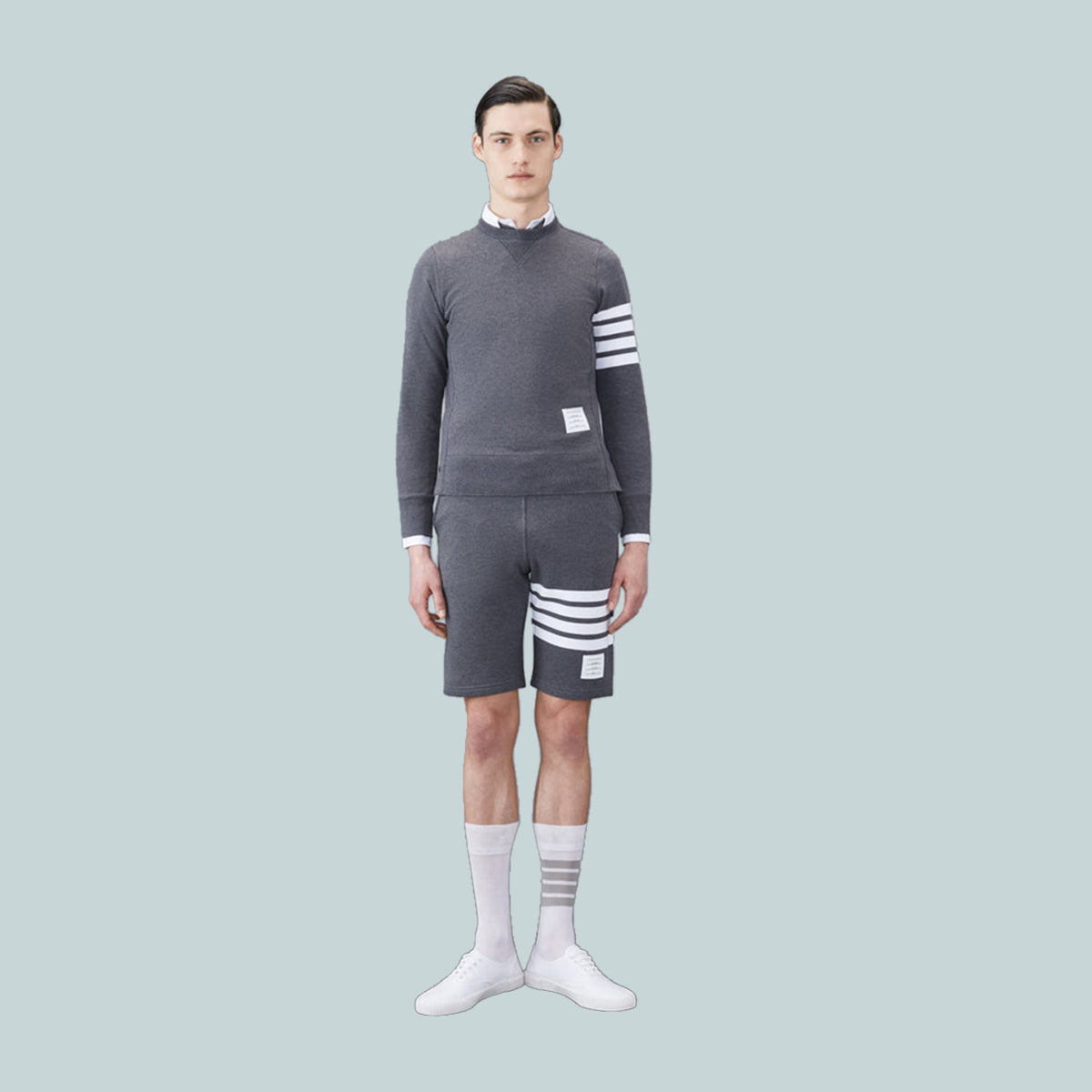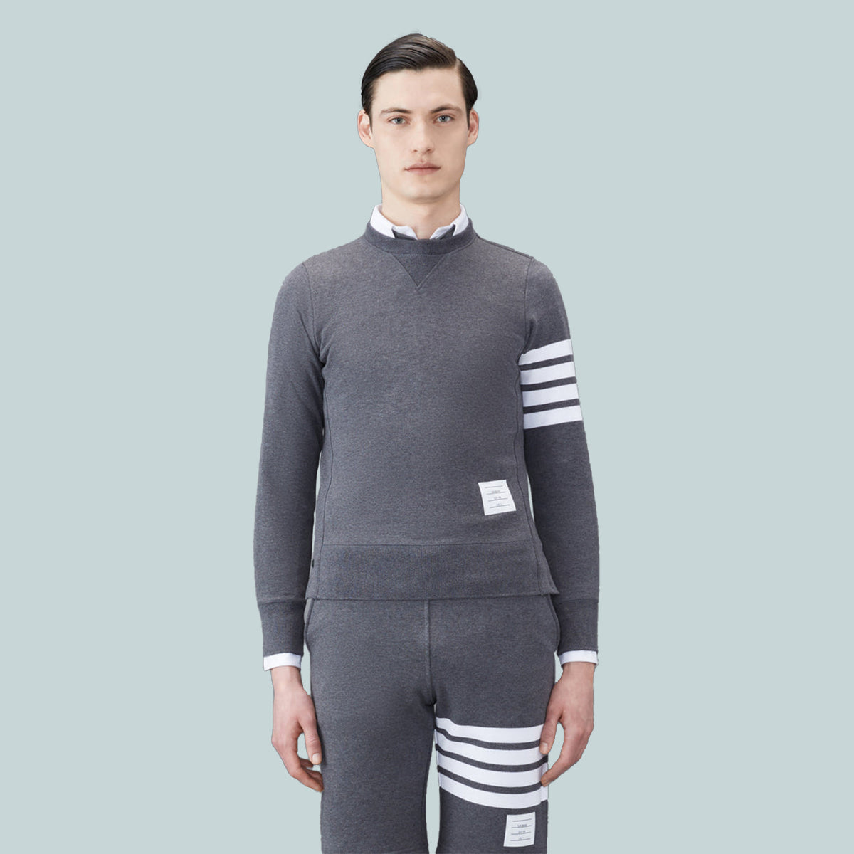 Leisurewear made artful. Our Classic Loopback 4-Bar Sweatshirt is adorned with our iconic 4-Bar stripe detailing emulated after varsity stripes.