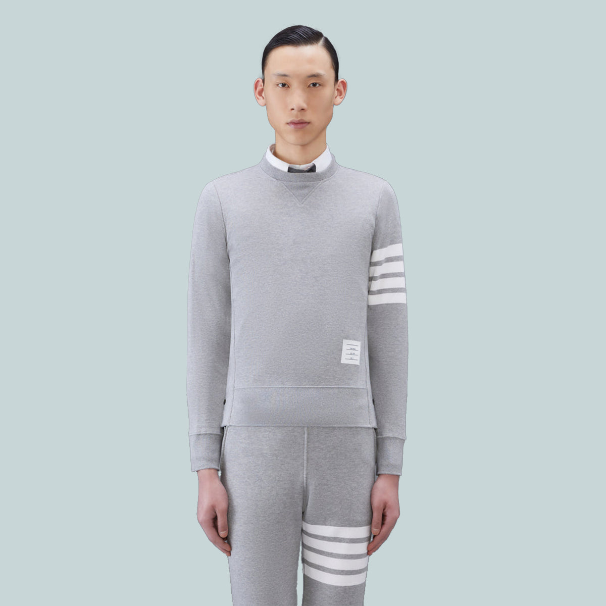 Leisurewear made artful. Our Classic Loopback 4-Bar Sweatshirt is adorned with our iconic 4-Bar stripe detailing emulated after varsity stripes.
