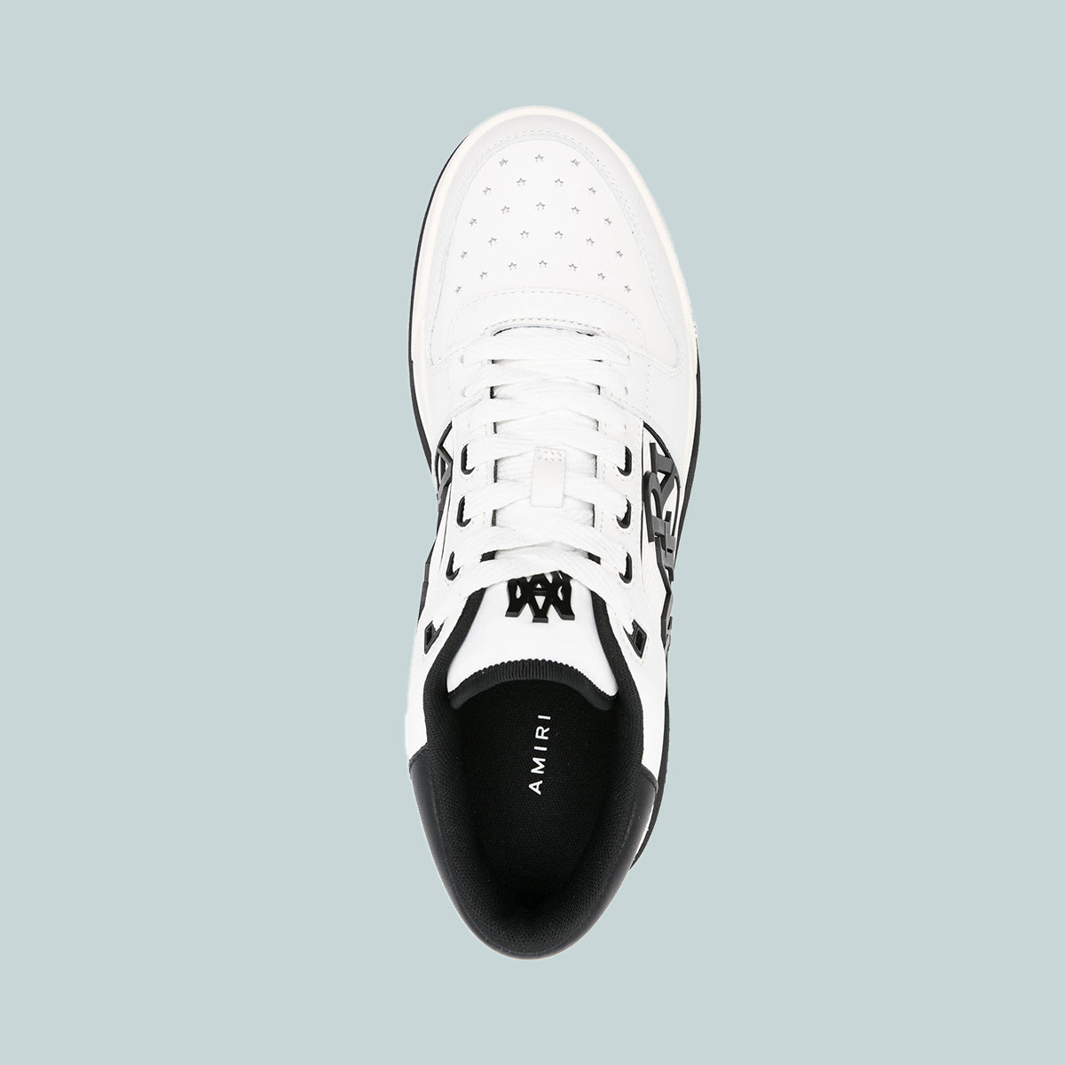 The classic low updates the timeless tennis sneaker through refinements in form and decisive house iconography. central panels of molded rubber mesh frame the amiri staggered logo while signature star perforations adorn the leather upper. finished with a two-tone rubber sole and dimensional rubber logo at back, the classic low is a new house icon steeped in time-honored sportswear aesthetics.