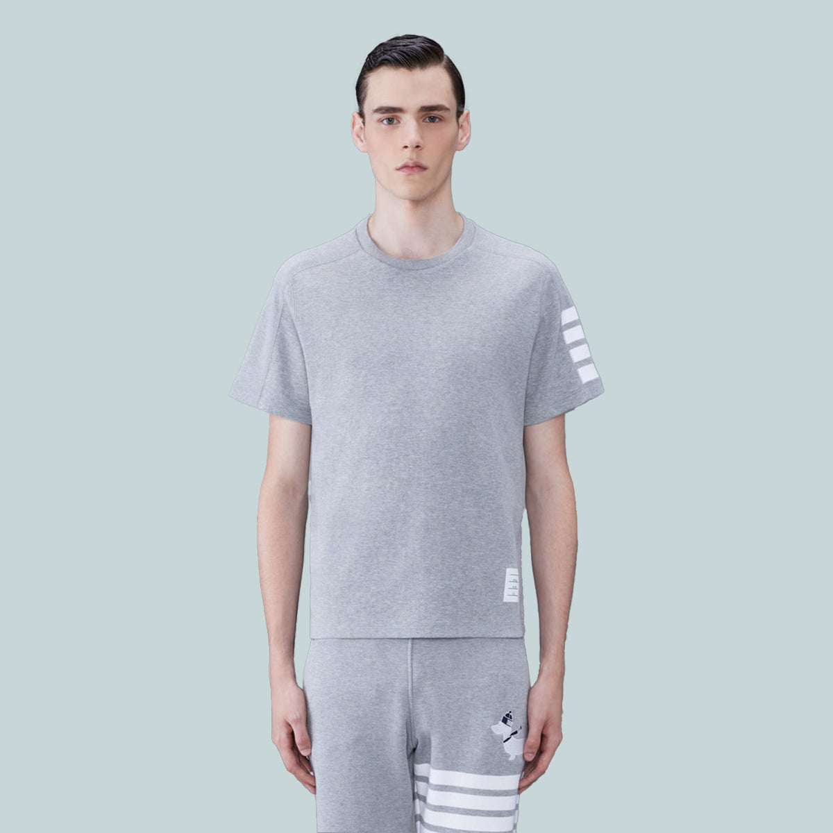 A silhouette that has stood the test of time, this luxe tee is adorned with signature Thom Browne emblems throughout and tailored to perfection.
