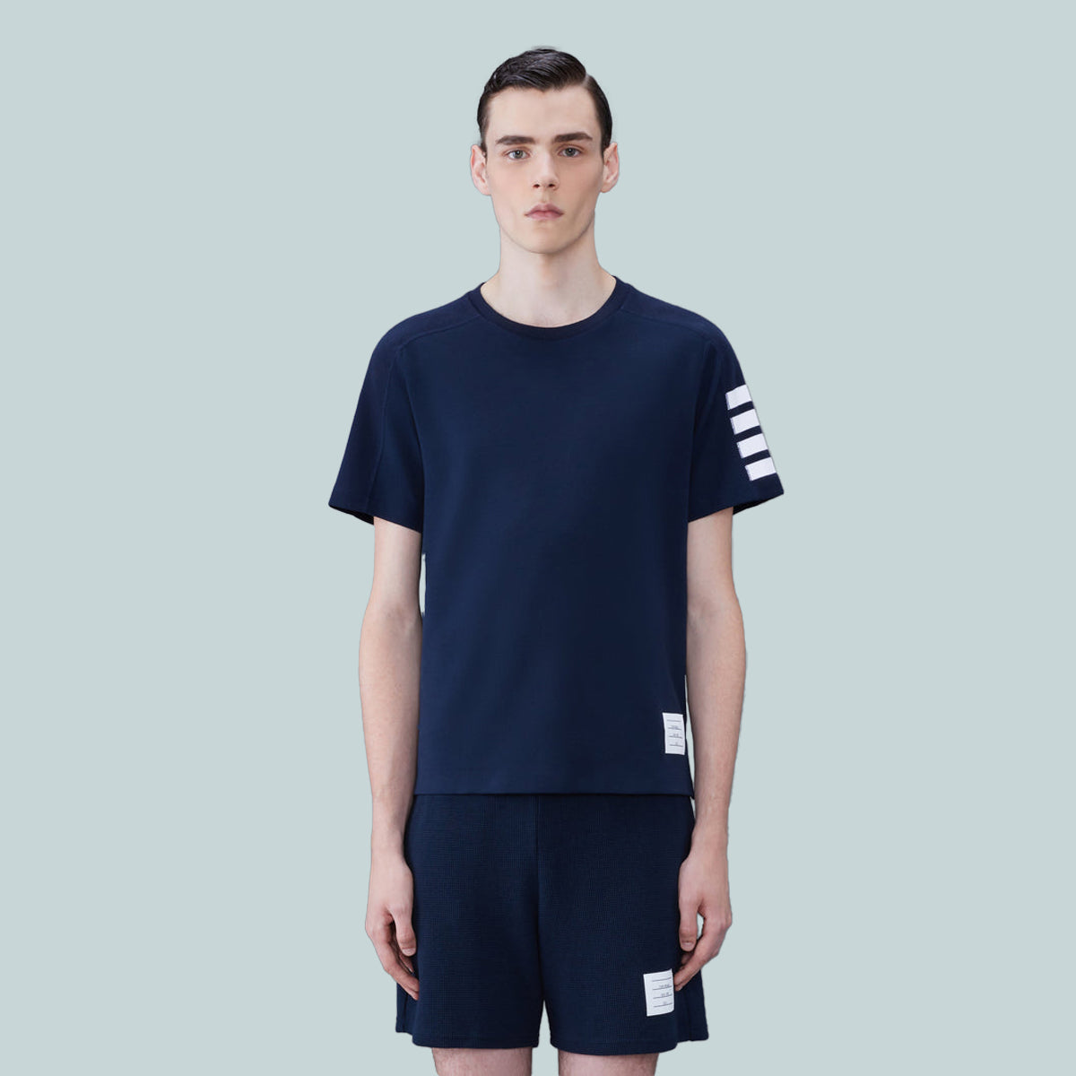 A silhouette that has stood the test of time, this luxe tee is adorned with signature Thom Browne emblems throughout and tailored to perfection.