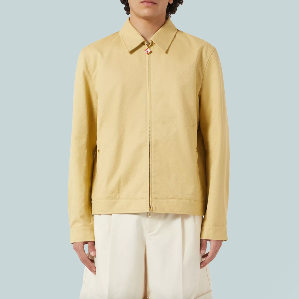 The cotton monogram jacquard jacket is a long-sleeve blouson design crafted from cotton jacquard fabric. Completed with a zip closure, a funnel collar, gold-plated hardware and slanted flap pockets.