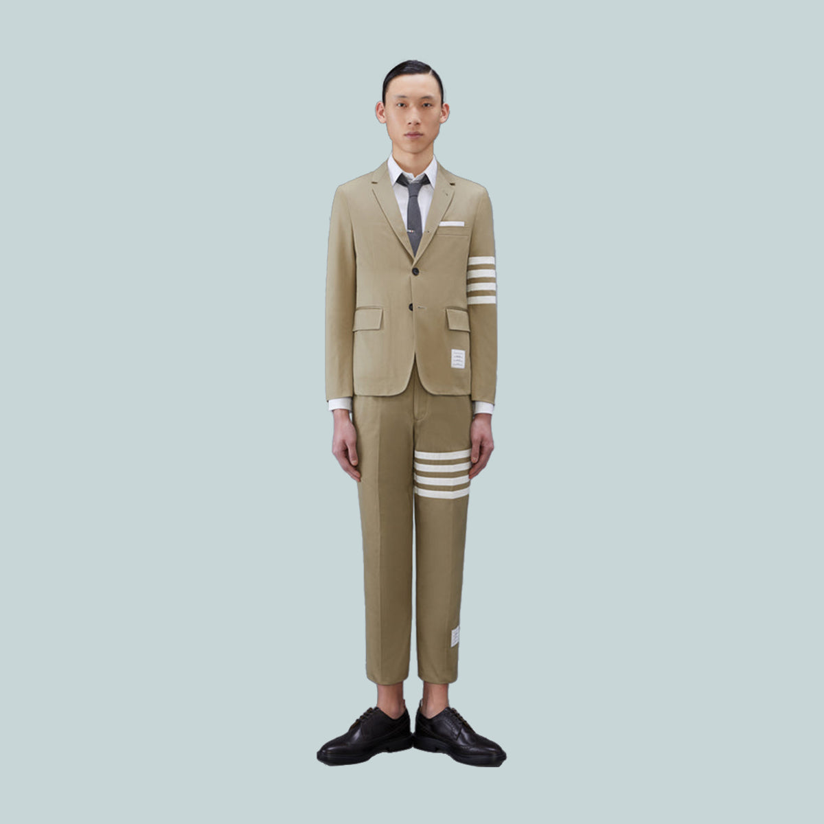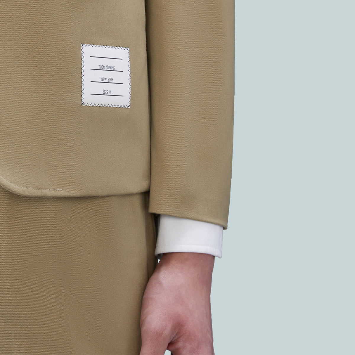 Our Cotton Twill 4-Bar Unconstructed Classic Sport Coat embraces a relaxed, wide fit for ultimate comfort while remaining true to Thom Browne classic heritage.