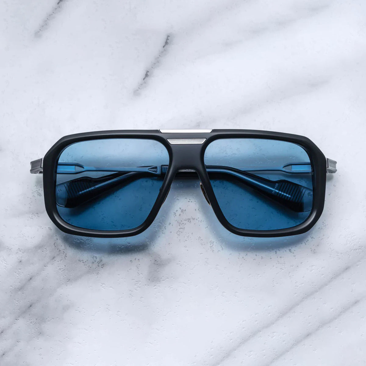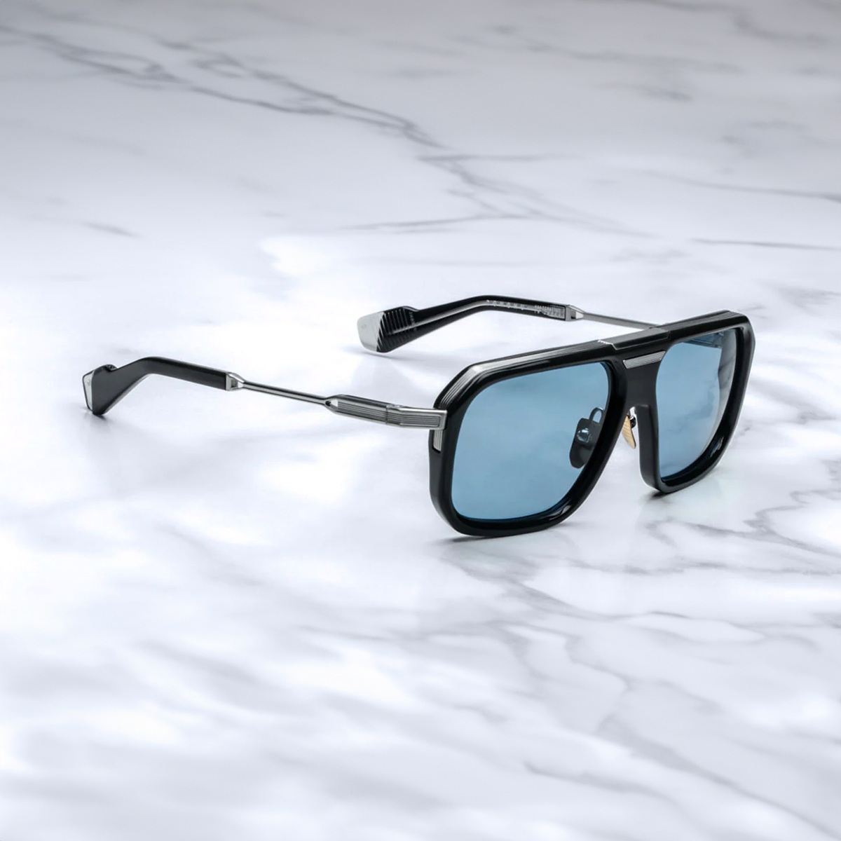 - Silver titanium temples with black epoxy detailing and acetate temple tips