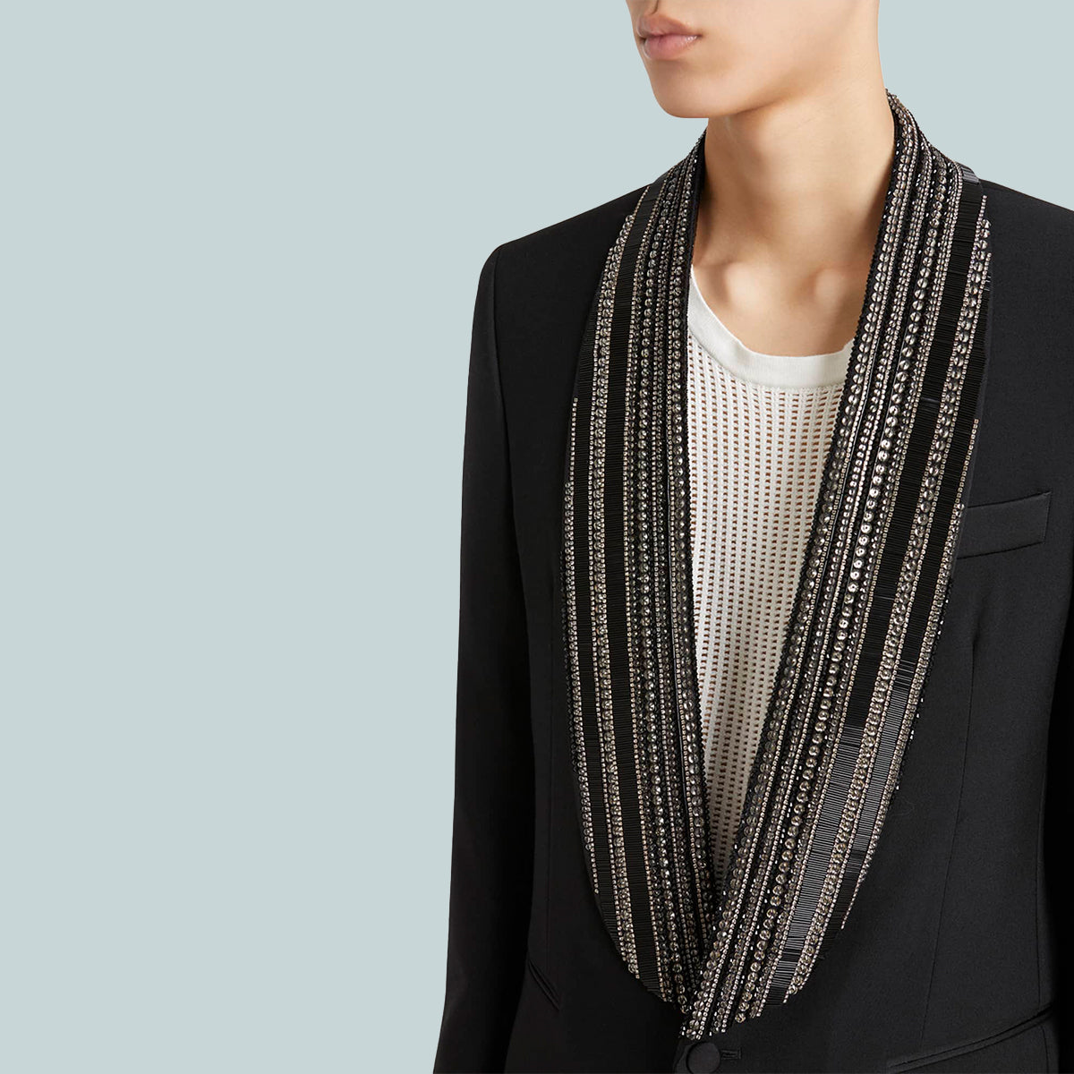 Increase quantity for Embellished Shawl Collar Blazer Black