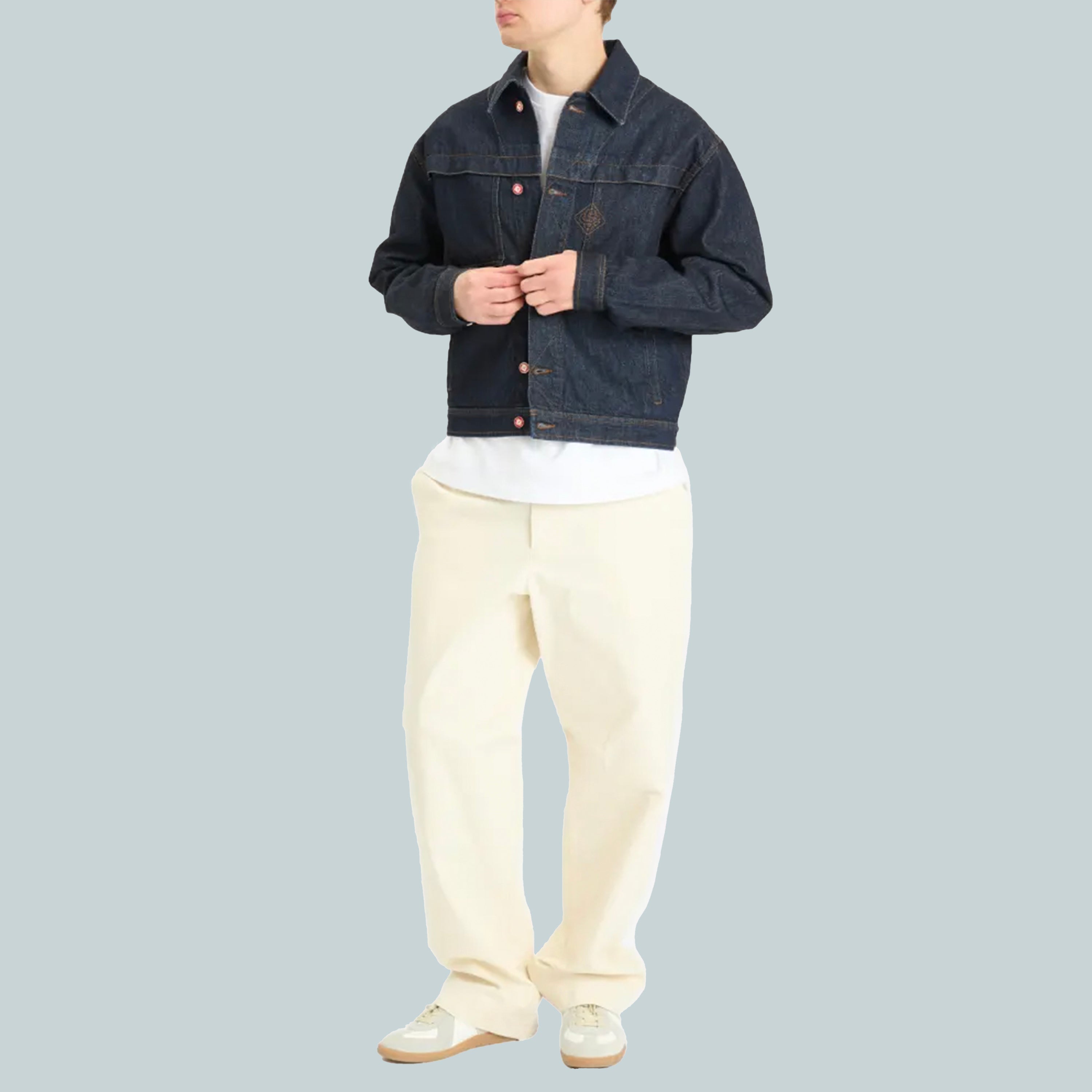 The monogram long-sleeve denim jacket is a long-sleeve design crafted from cotton denim fabric. Completed with breast pockets, a point collar, button closure, branded gold-plated hardware, a box pleat in the back and an embroidered CC logo.