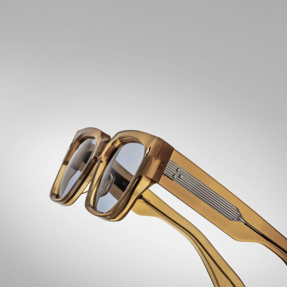 Material: Brown 10mm cured cellulose acetate frame with custom double laminated acetate temples