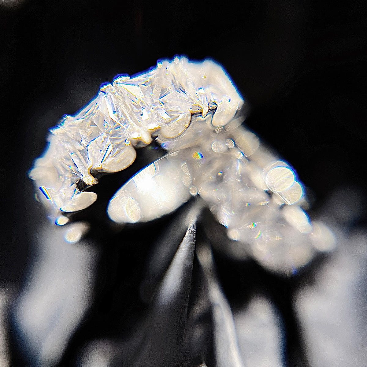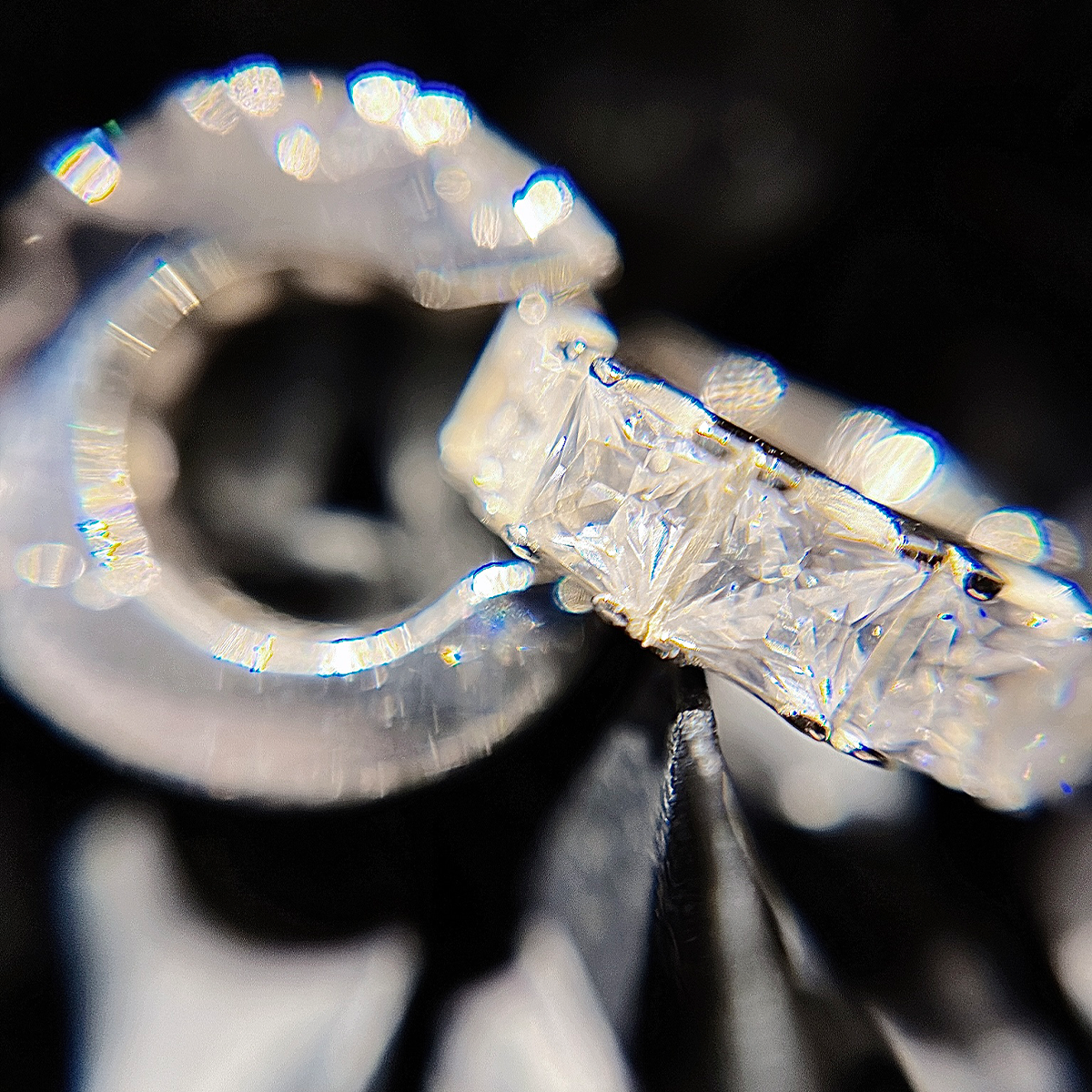 featuring 3mm round cut white laboratory gemstones