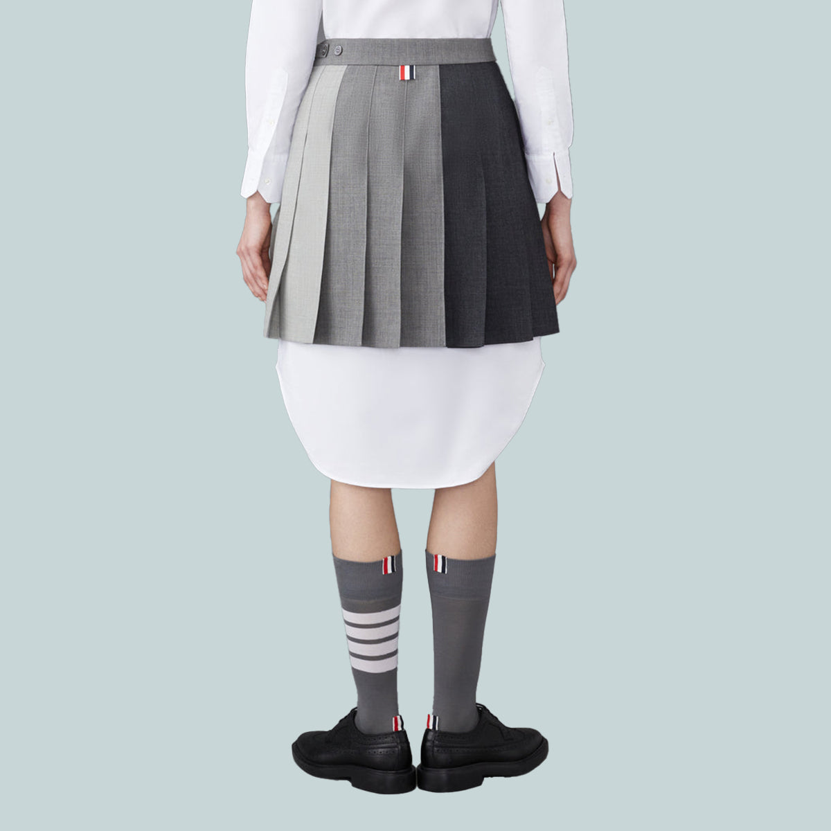 Fun Mix Wool Fresco Classic Mini Pleated Skirt Grey