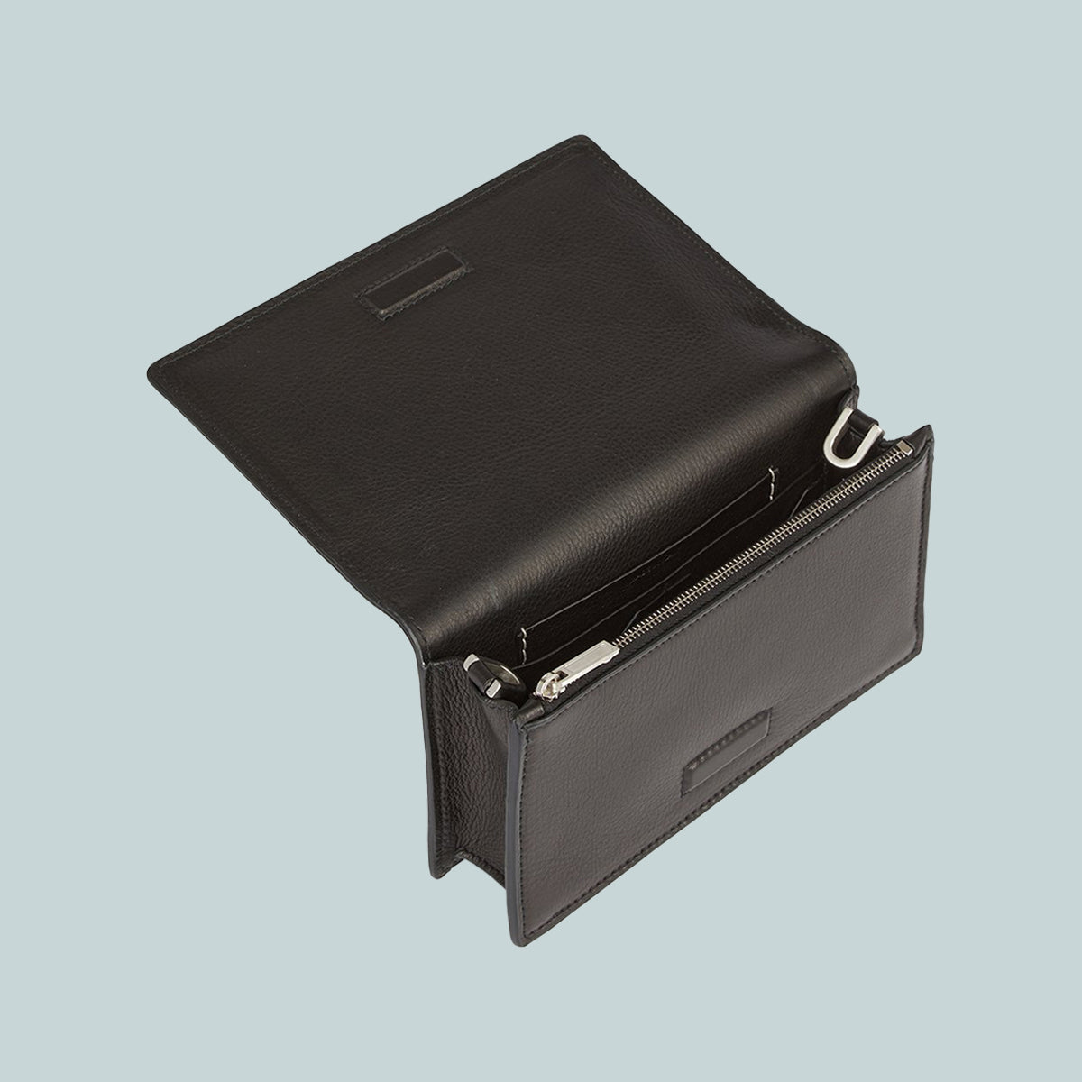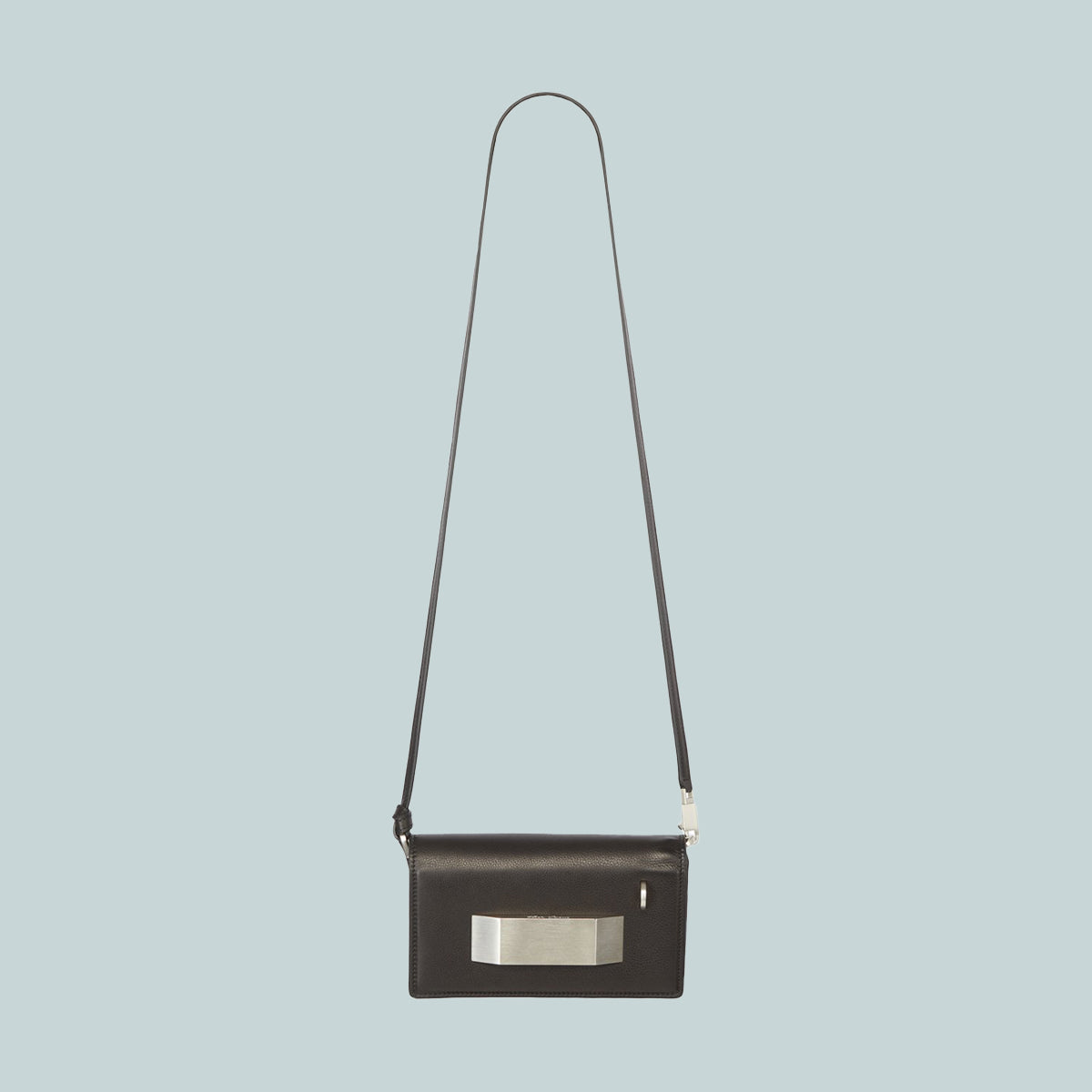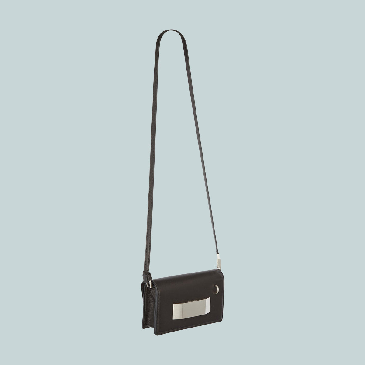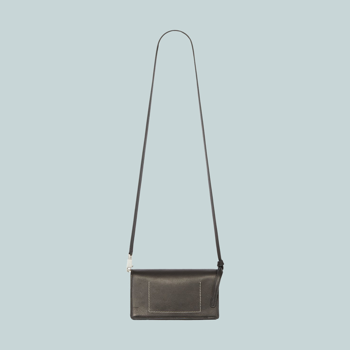 This griffin is a small rectangular bag with a front flap with a palladium indented easy-grip bevel and magnetic closure. It has one ponticello d-loop on front, an inner pocket with 9 card slots and a second inner zippered pocket. It features a long thin leather strap with a palladium tone brass hook which ties on one side, or can be detached to create a clutch. This medium weight cow leather has a subtle grain texture and natural hand-feel. Tanned in the Veneto area of Italy, this leather is tumbled multiple times in a large drum in order to bring out the natural grain texture of the skin. The leather is finished with aniline and air-dried in order to achieve the natural and waxy hand-feel. This tannery is LWG certified with a silver rating.