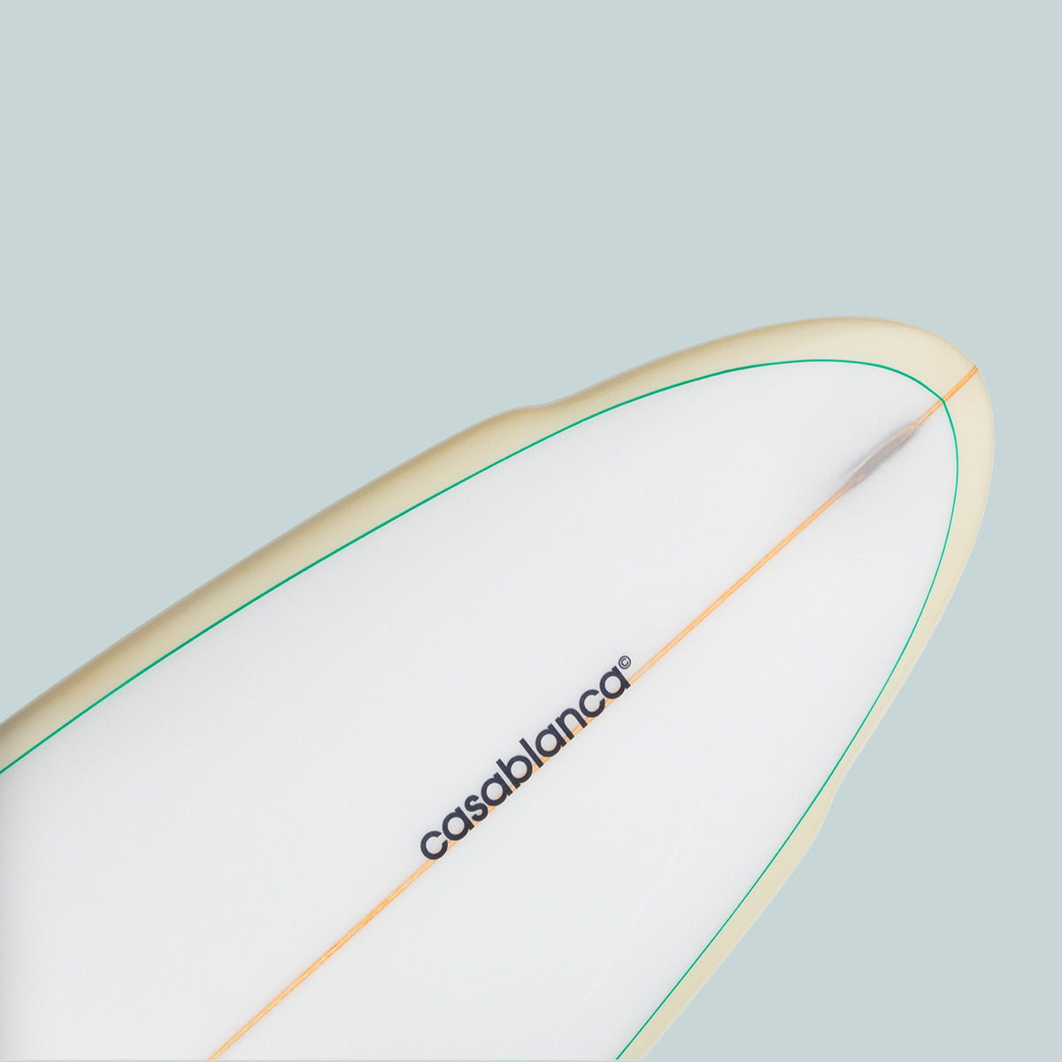 The Casablanca surfboard is crafted from premium fibreglass, polyurethane foam and polyester resin and features the house's Degrade monogram print on the bottom and Casablanca branding with the signature diamond logo on the deck. Completed with a wood stringer, a white deck with a mint green border and light yellow rails. The Casablanca surfboard measures 178.2cm (from nose to tail) x 53cm (from rail to rail at the widest point). This item is not supplied with fins or leash.