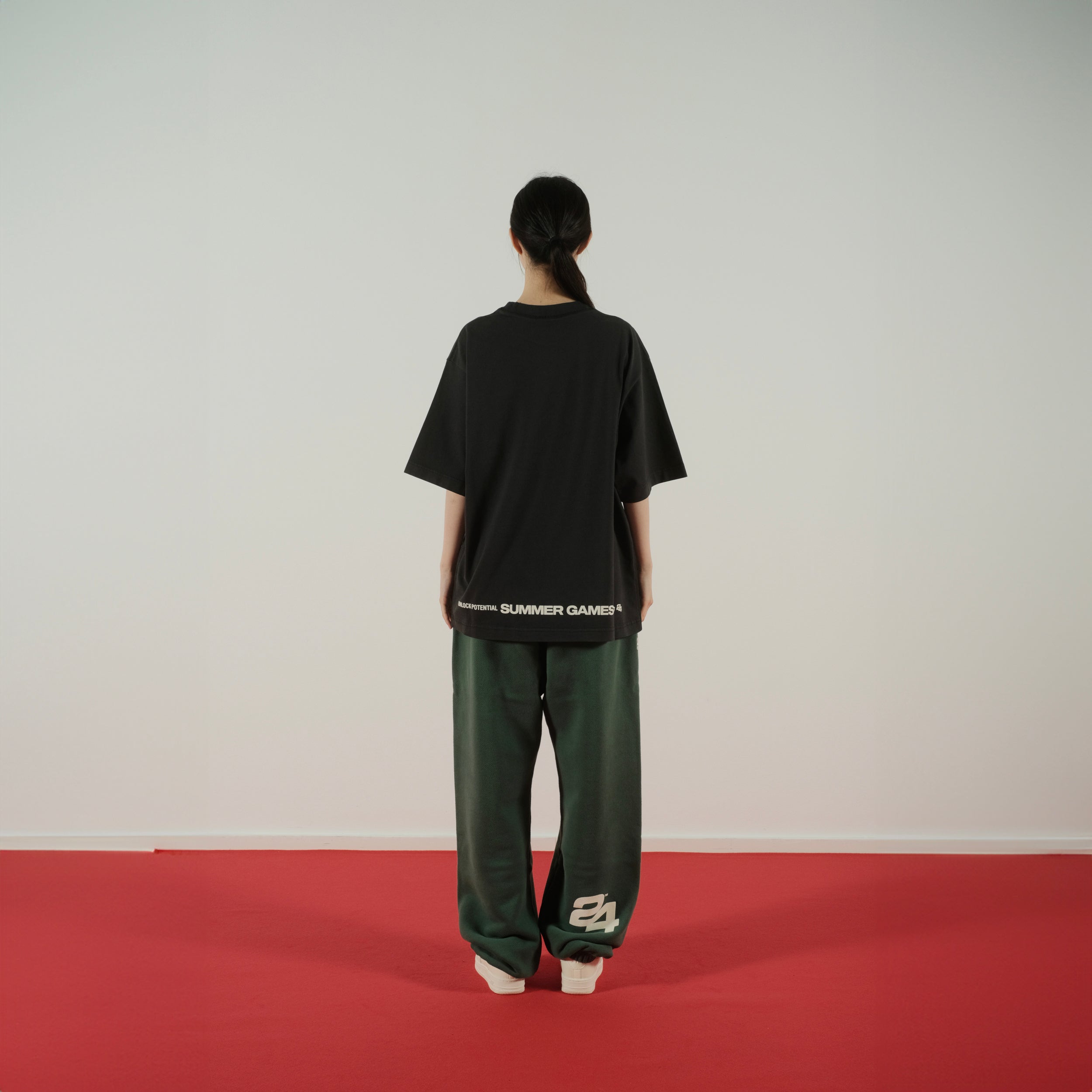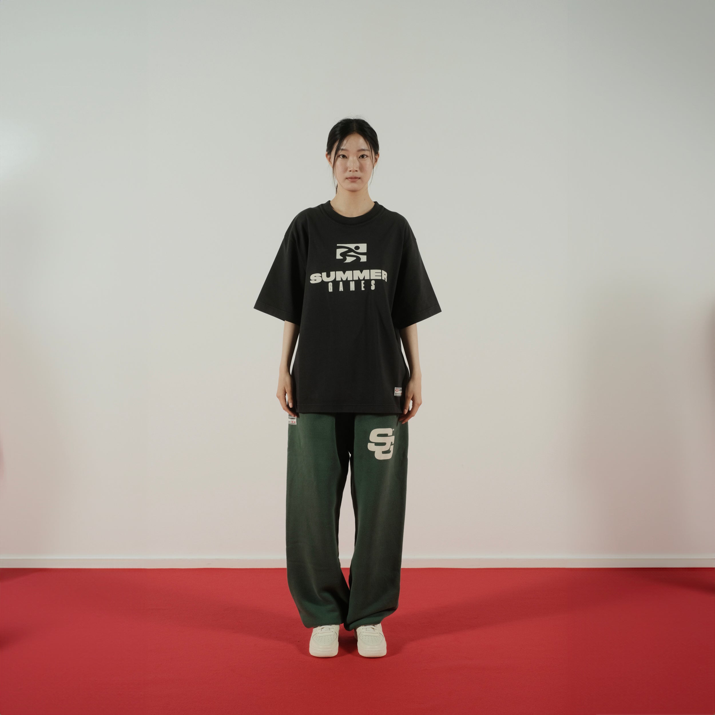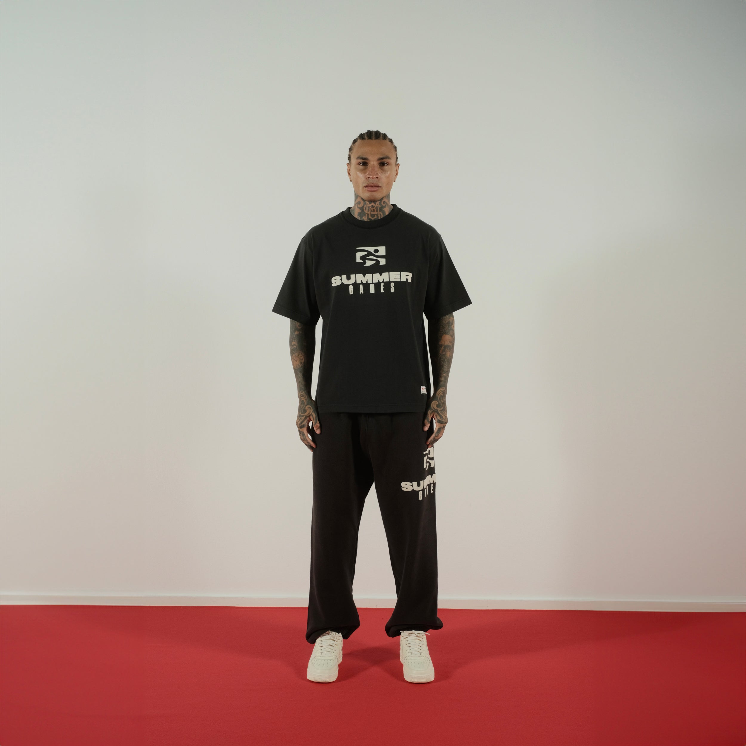 Athletic fitted tee made out of mid weight, ultra soft cotton jersey with puffed matte screen print and brand tag.