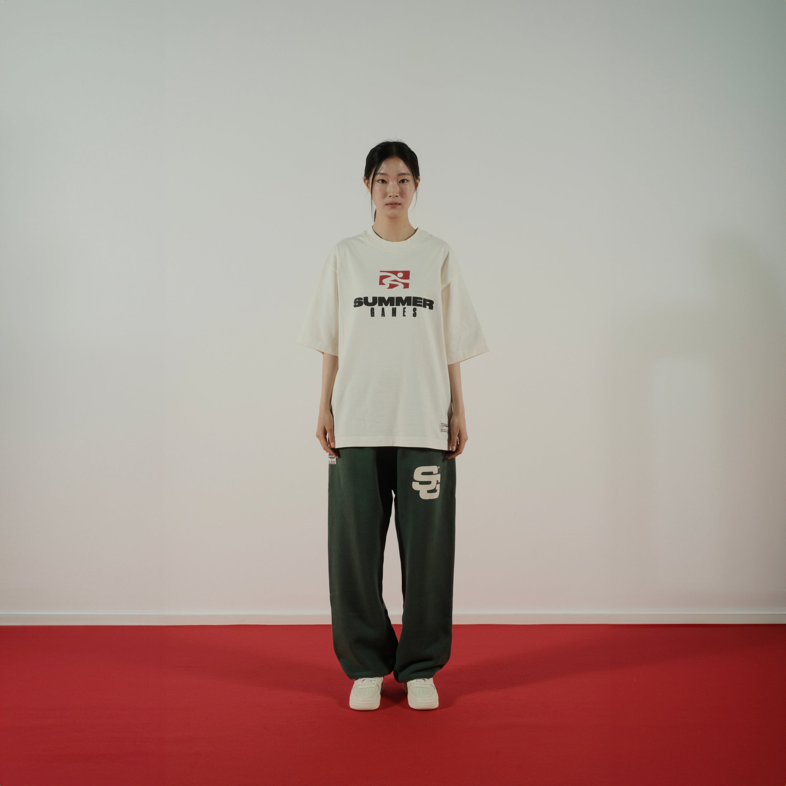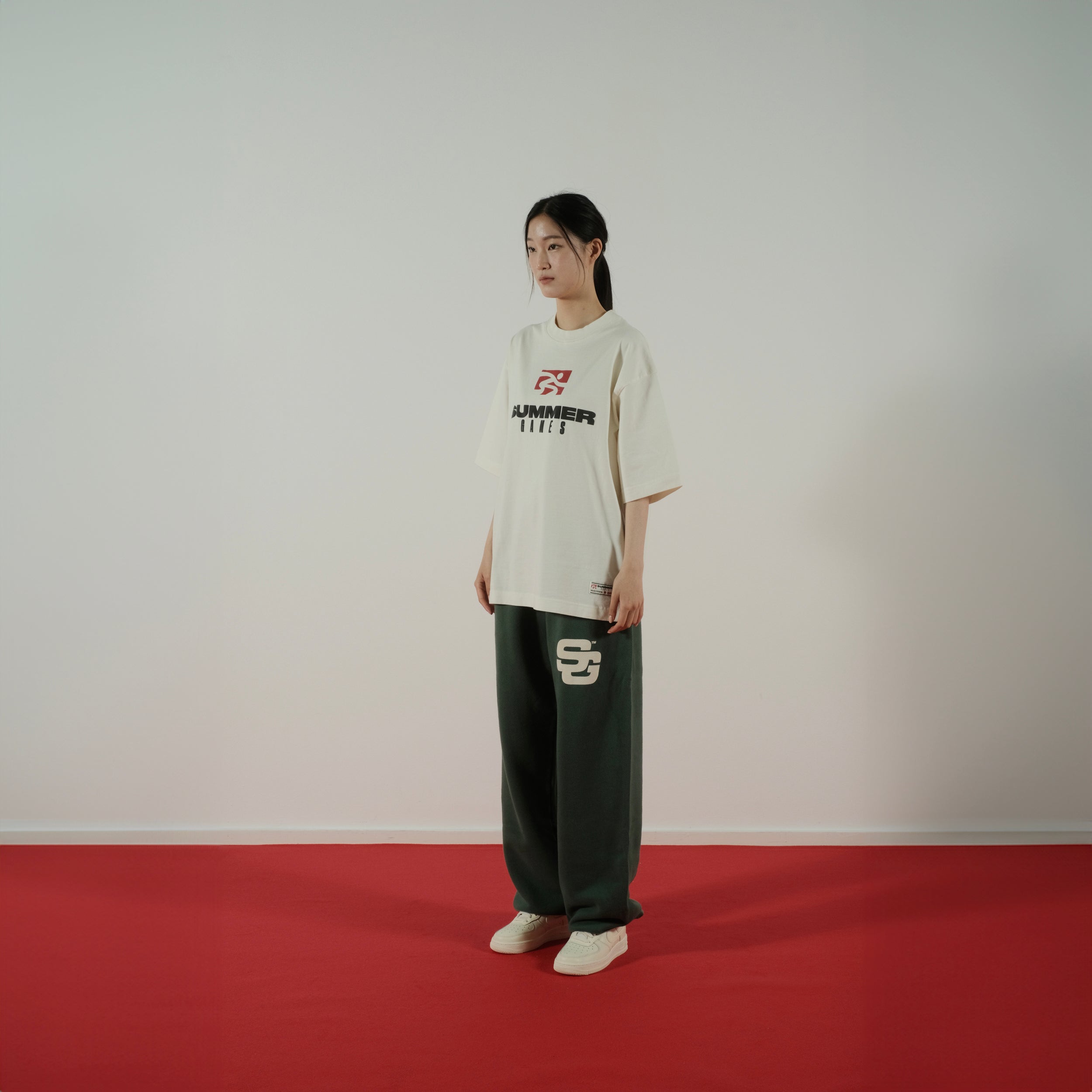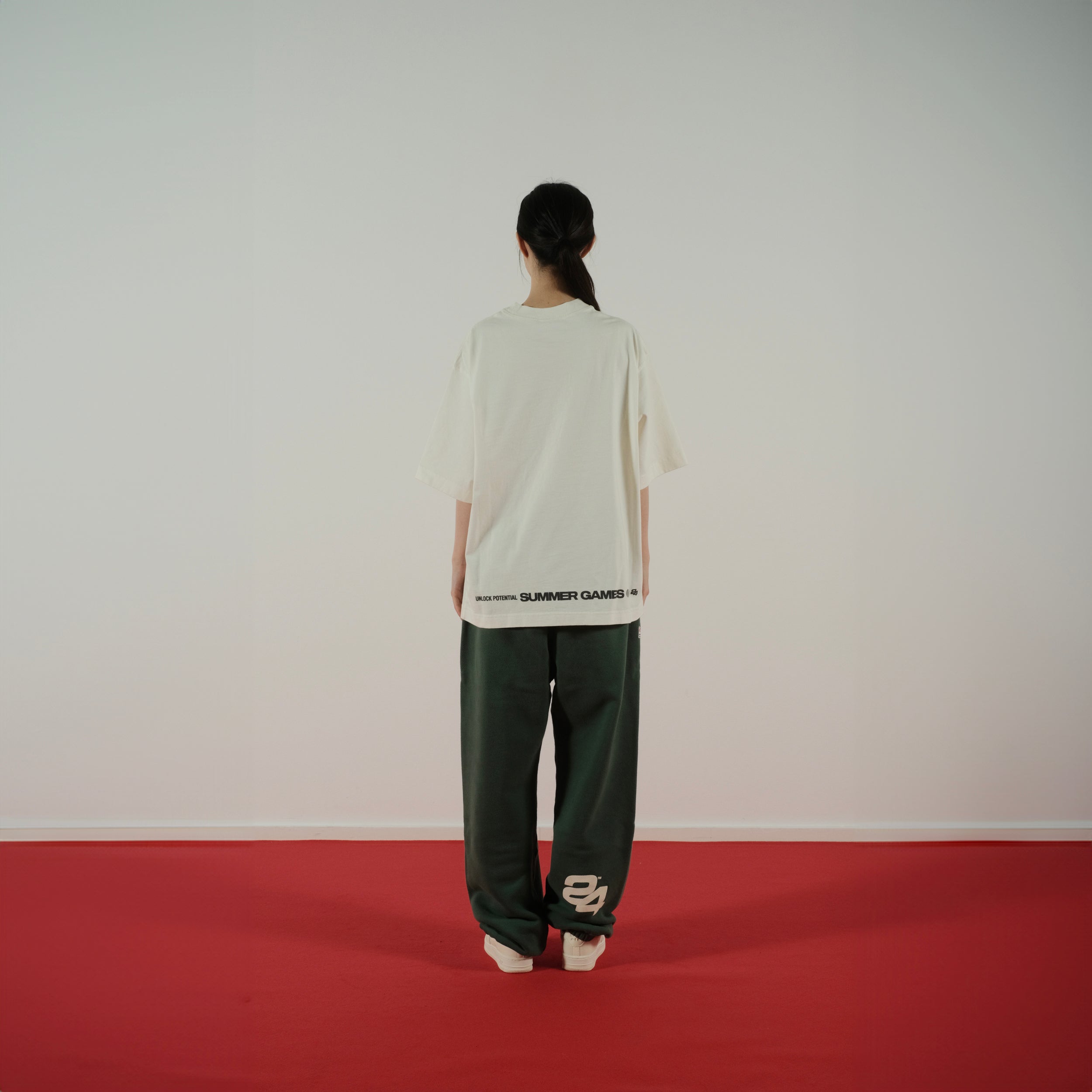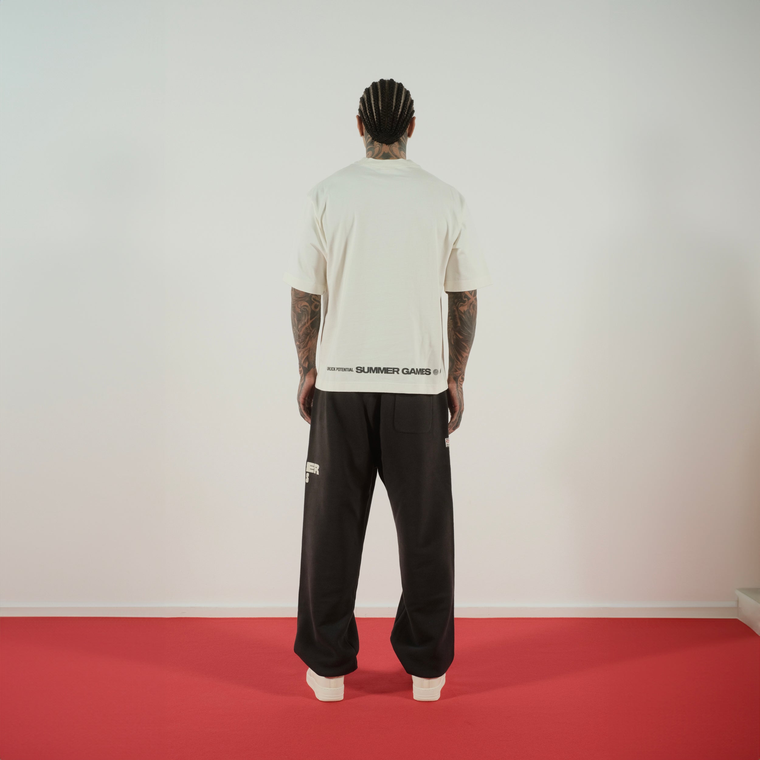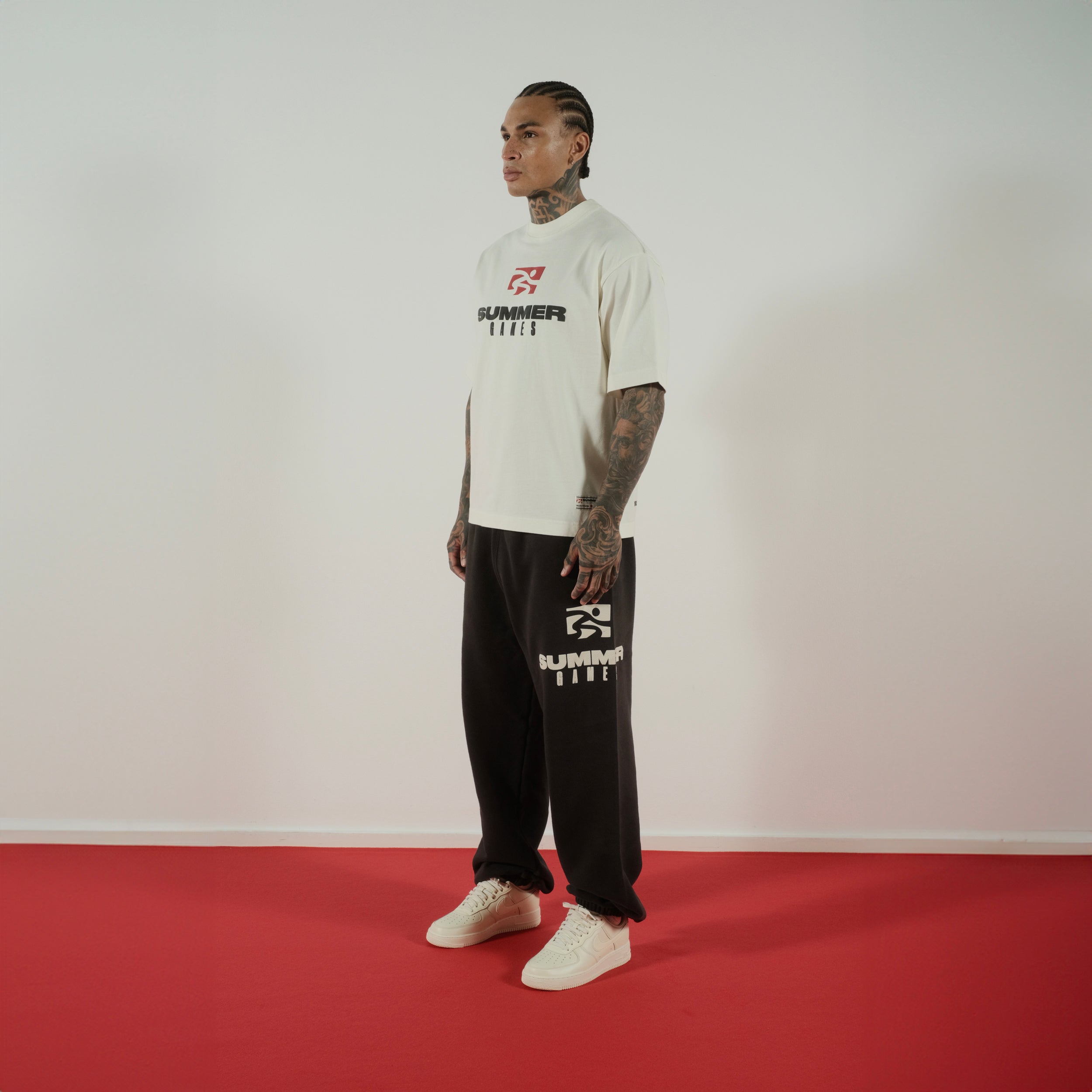 Athletic fitted tee made out of mid weight, ultra soft cotton jersey with puffed matte screen print and brand tag.
