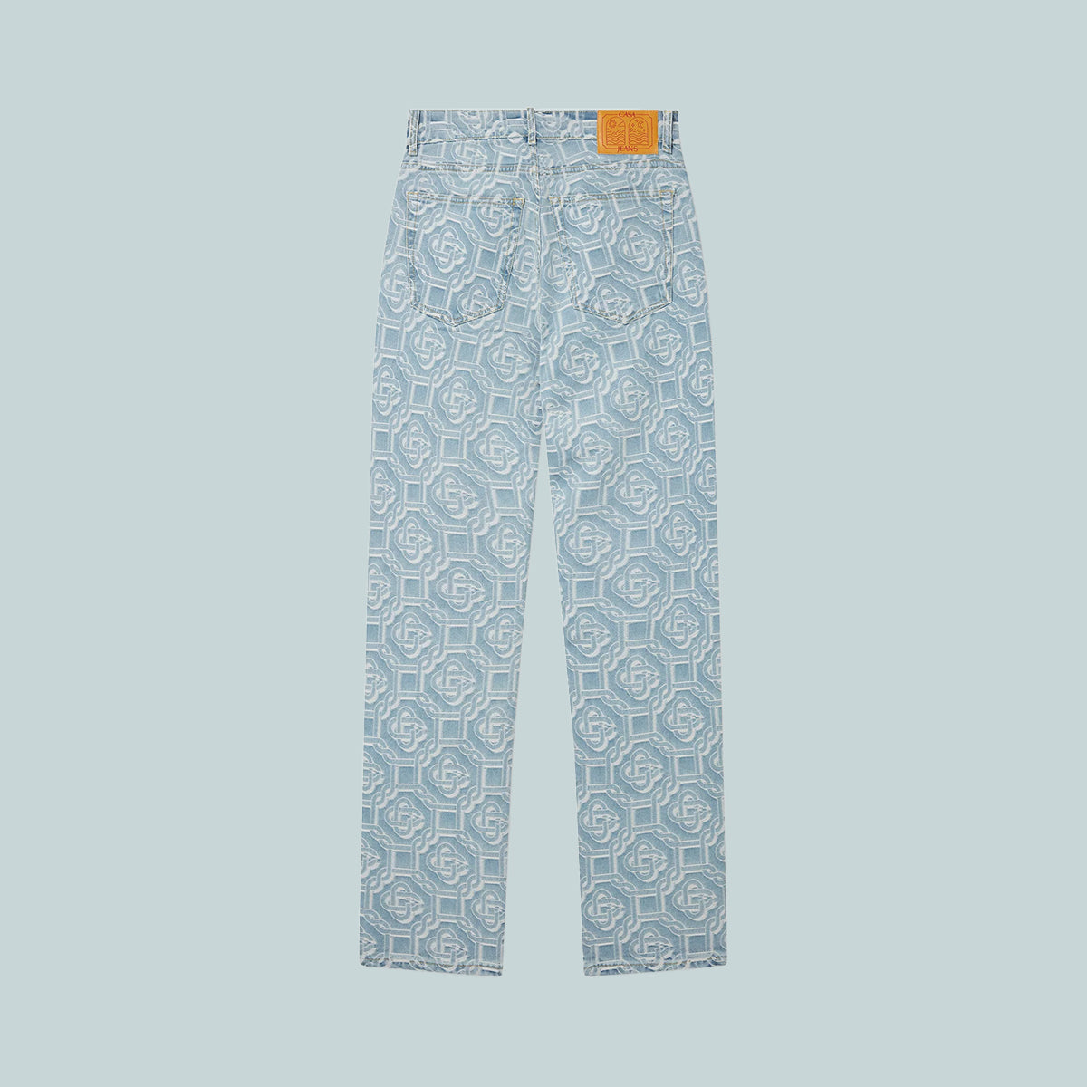The Monogram jacquard straight-leg jeans are crafted from a cotton fabric in the house's signature denim for a classic fit. Completed with side pockets and gold hardware closure. Intended to be worn with its coordinating jacket.