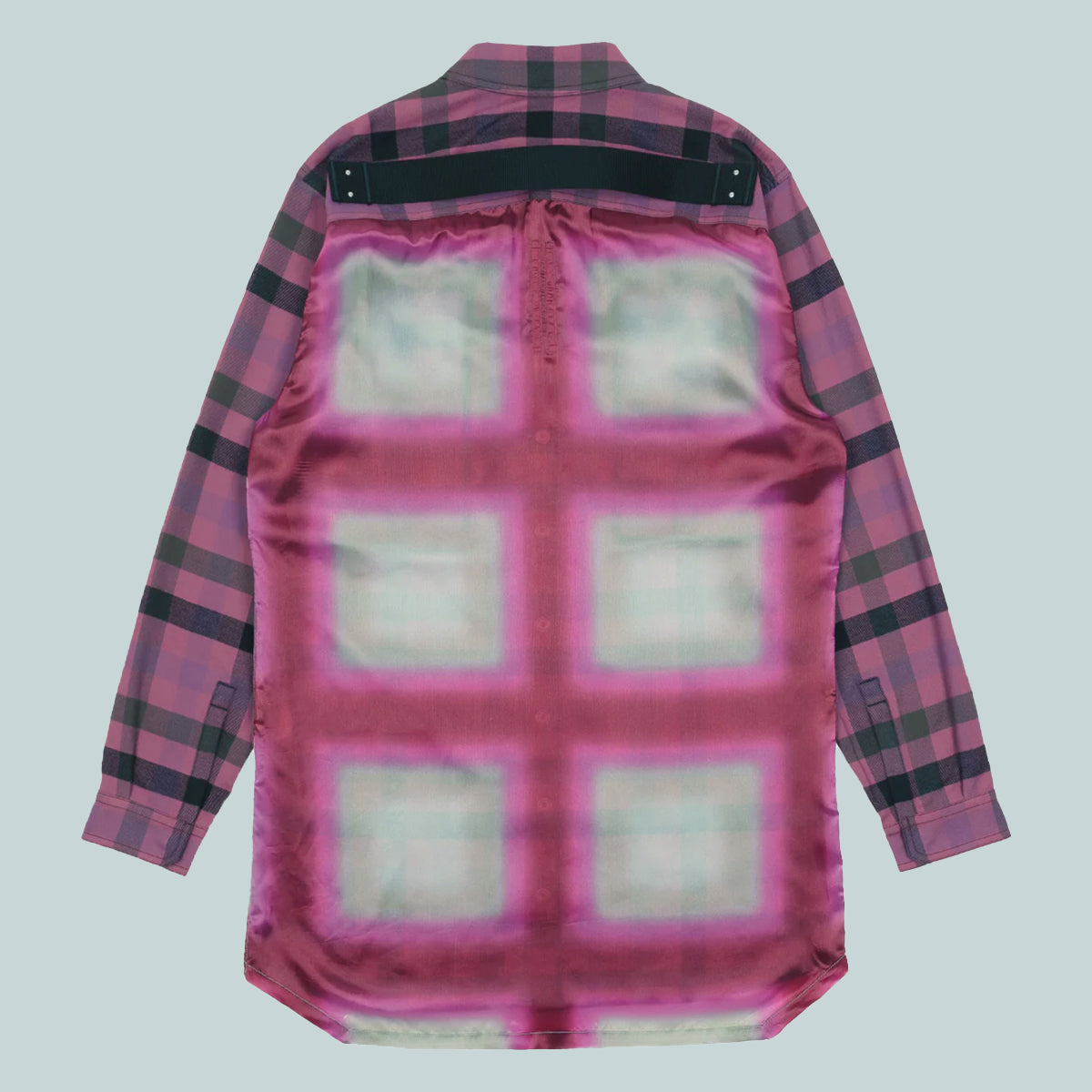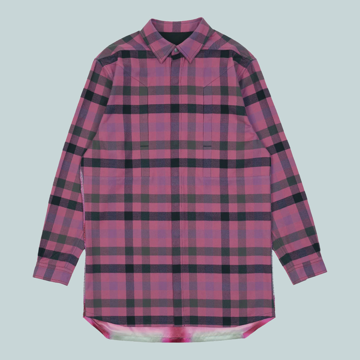 This fogpocket outershirt is below hip length. It has a centre front opening with snaps that are concealed when closed, a classic shirt collar, beveled side seams with splits, snap cuffs and double topstitching. It features two fog breast pockets with a vertical opening and internal snap, signature level shoulder seams and a cotton webbing strap with rivet detail on the back yoke. This is a combo fabric version.