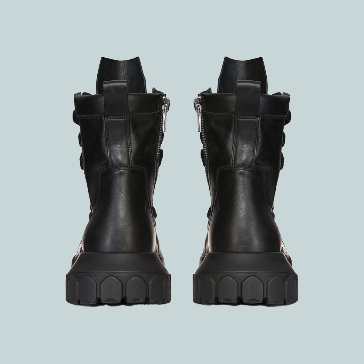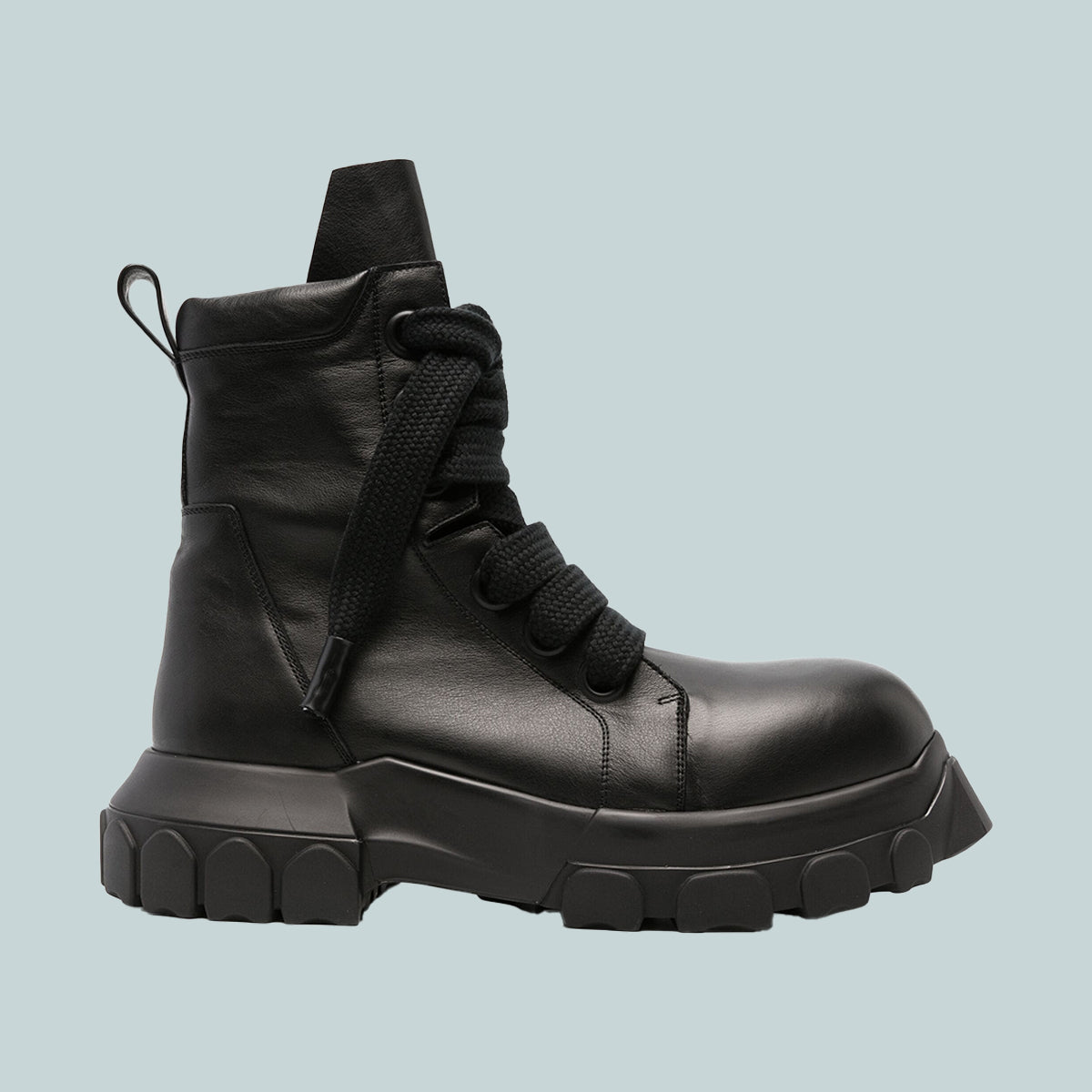 Rick Owens SS24 lido jumbo laced bozo tractor in black full grain calf leather