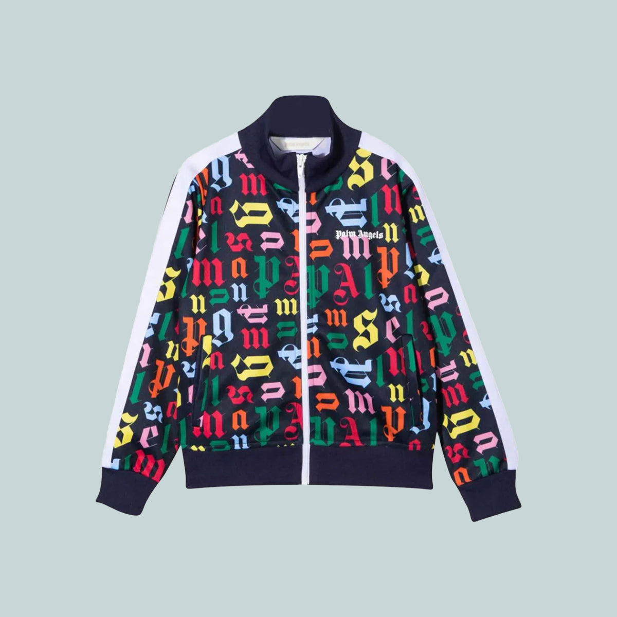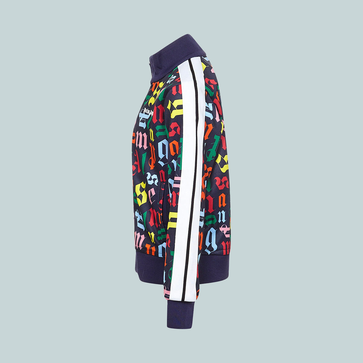 Track jacket with front zip fastening, featuring a multicoloured monogram print. High neck. Straight hem. Two side slit pockets.
