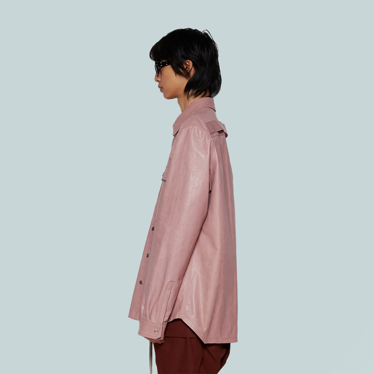 Rick Owens ss24 lido leather outershirt in dusty pink
