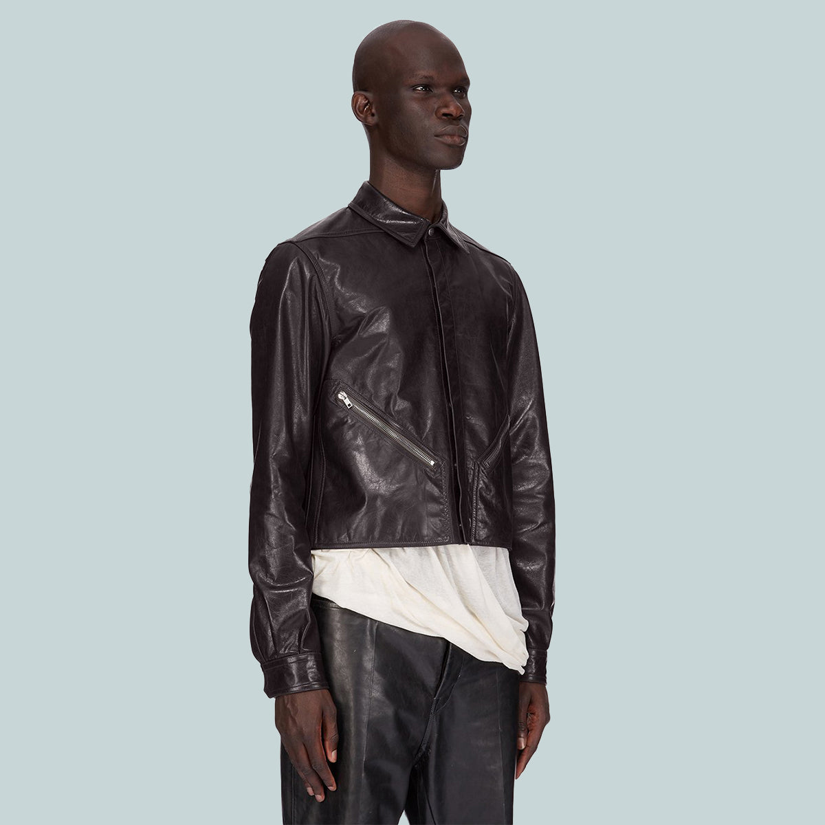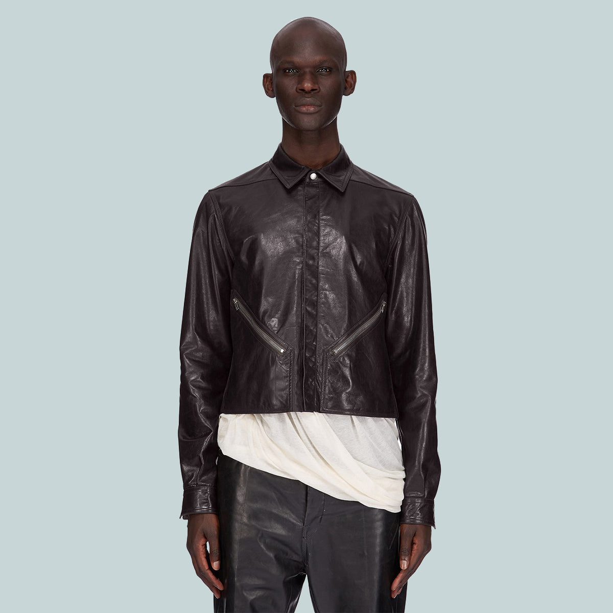 rick owens ss25 hollywood tour alice shirt in black soft sugar calf leather
