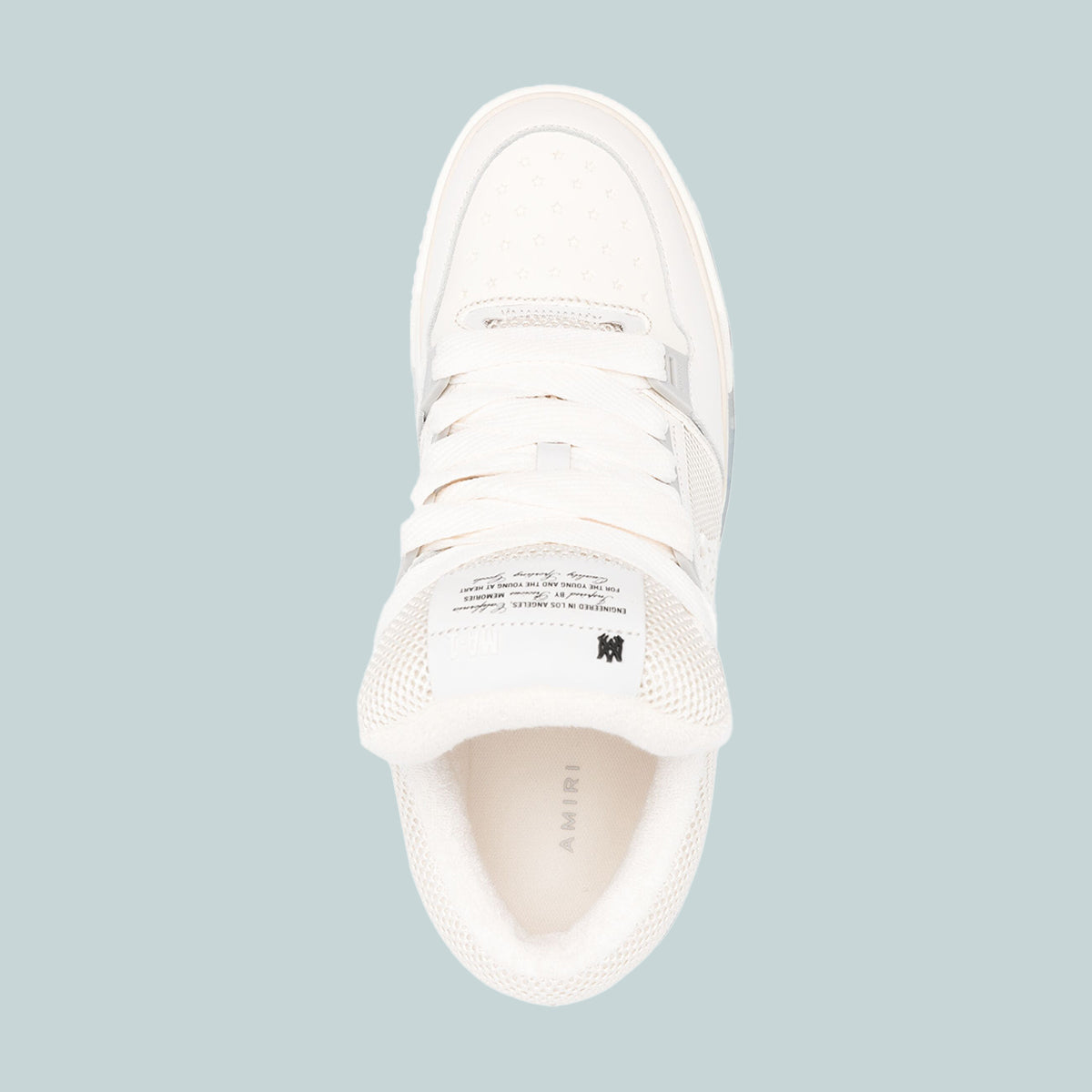 The MA-1 is an ode to the bold, amplified sneaker silhouettes of '90s west coast skate renegades. crafted on an exaggerated rubber outsole, this sneaker contrasts supple leather with soft toweling alongside perforated panels, double lace fastening and branded eyelets. the ma icon lends a signature element, while the quilted nubuck tongue is signed with mike Amiri's own words: “engineered in los angeles, california. inspired by precious memories. for the young and the young at heart.”