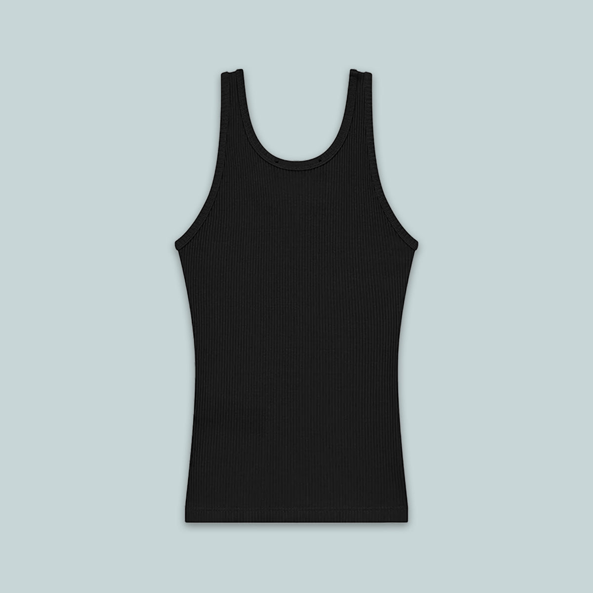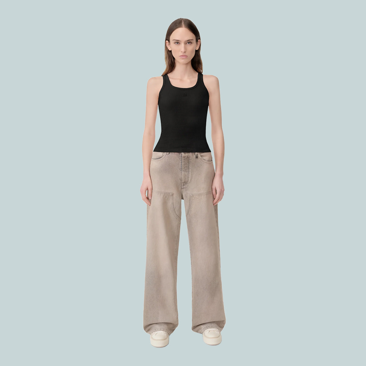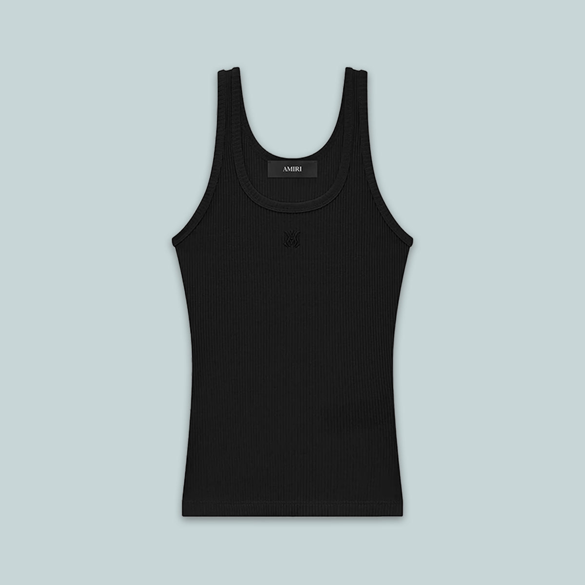 Pre-fall 2025 womenswear introduces versatile silhouettes enhanced by house iconography. The MA embroidery tank is designed in stretch cotton rib with rib accents and the embroidered ma icon.