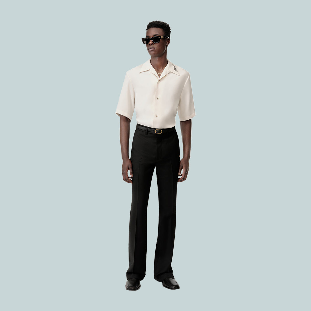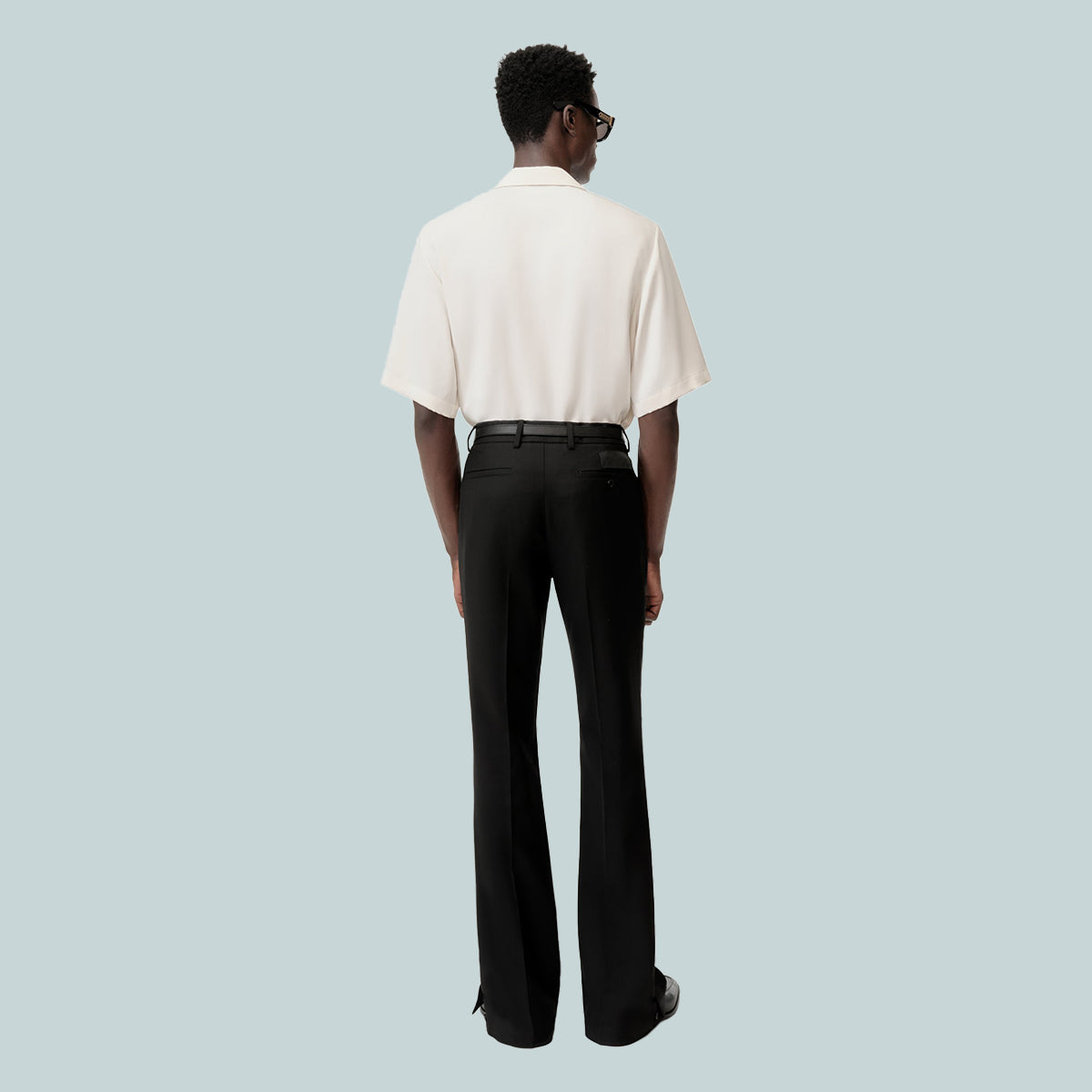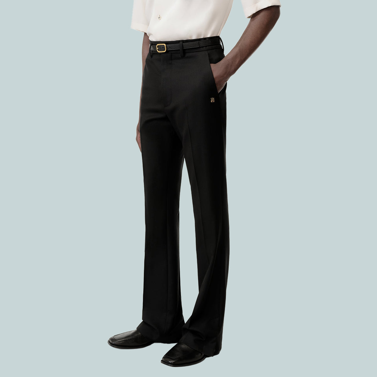 Pre-Fall 2025 menswear recasts tailored suiting tropes through a relaxed, contemporary lens. The MA Flare in virgin wool is designed in the house's signature flare silhouette with concealed hook-and-zip tab closure and concealed buttons at the ankle for a customizable fit.