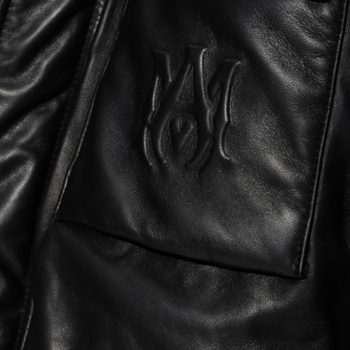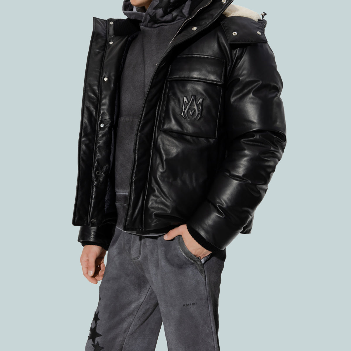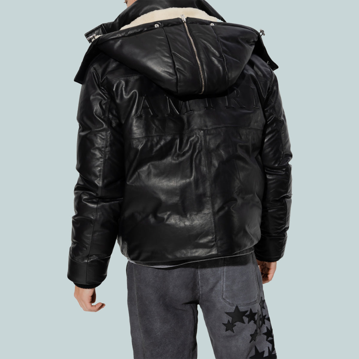 Increase quantity for MA Hooded Leather Down Jacket Black