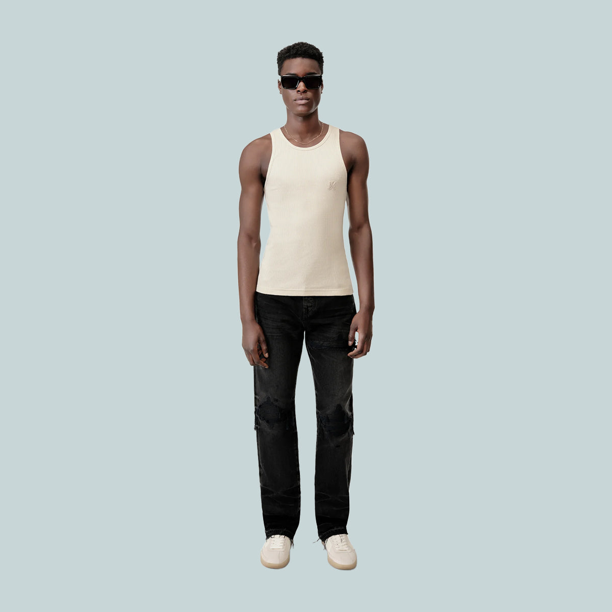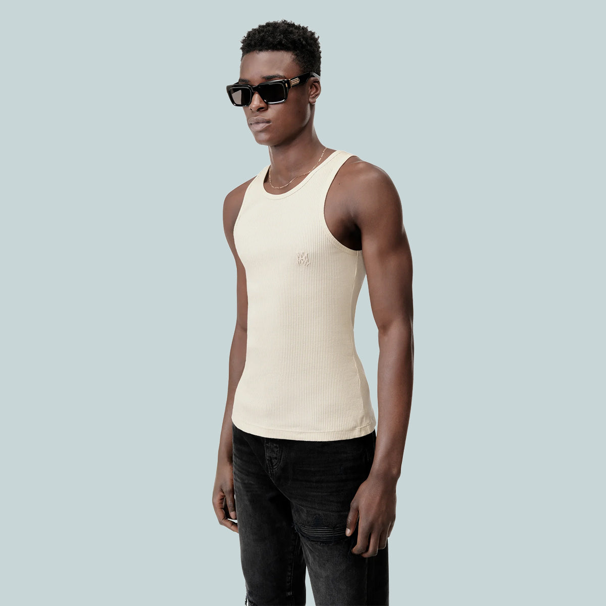 Pre-Fall 2025 introduces versatile wardrobe classics enhanced by house iconography. The MA Tonal Tank is designed in stretch cotton rib and finished with the embroidered MA icon.