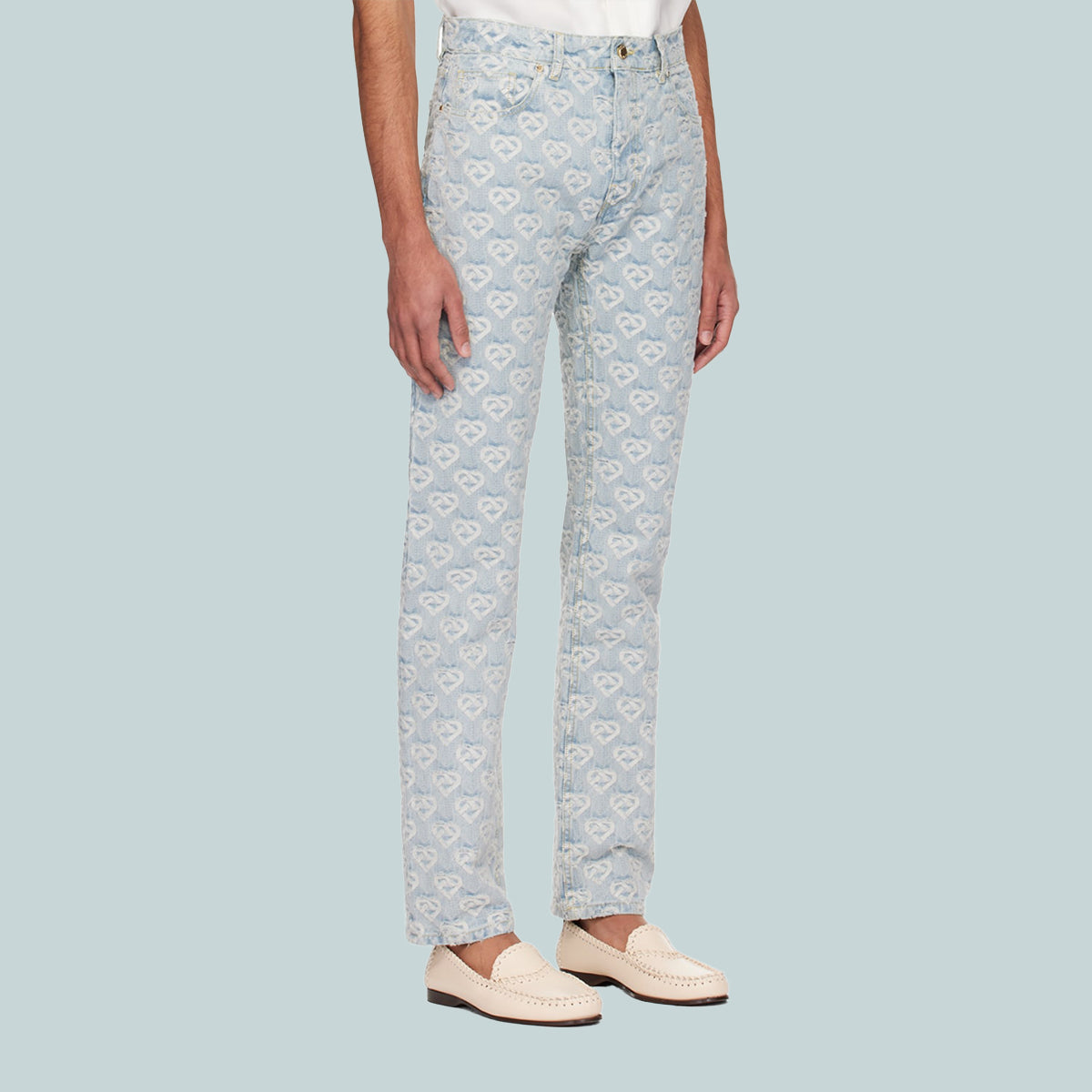 Men's Heart Jacquard Denim Jeans