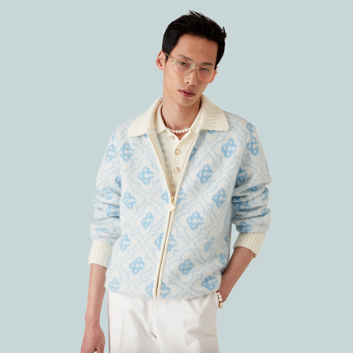The monogram mohair zip jumper is a long-sleeve monogram design crafted from a mohair fabric. Completed with a zip closure, signature diamond logo zipper tab, rib collar, cuffs, and hem.