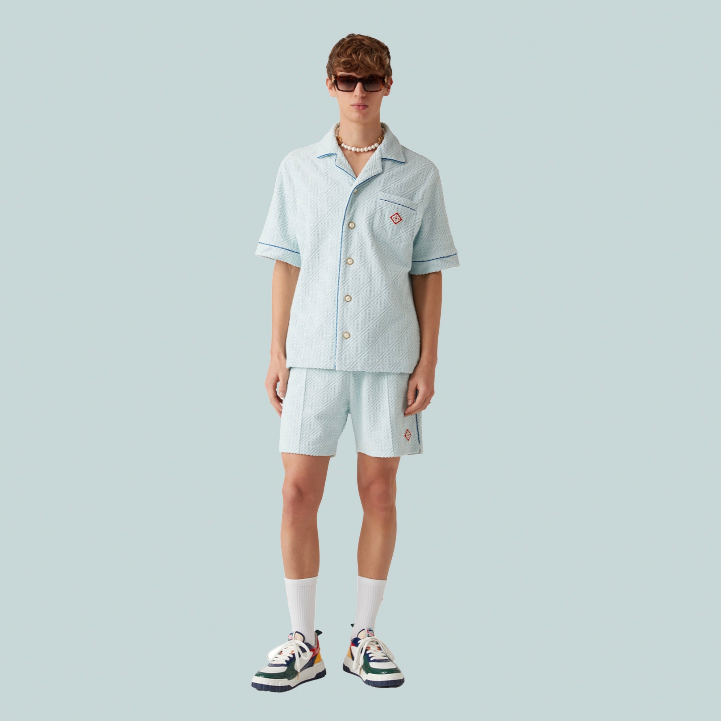 The monogram towelling shirt is a short-sleeve design crafted from a monogram cotton blend towelling fabric and features the house's signature diamond logo. Completed with a breast pocket, contrast piping, gold rim pearl buttons and a Cuban collar.