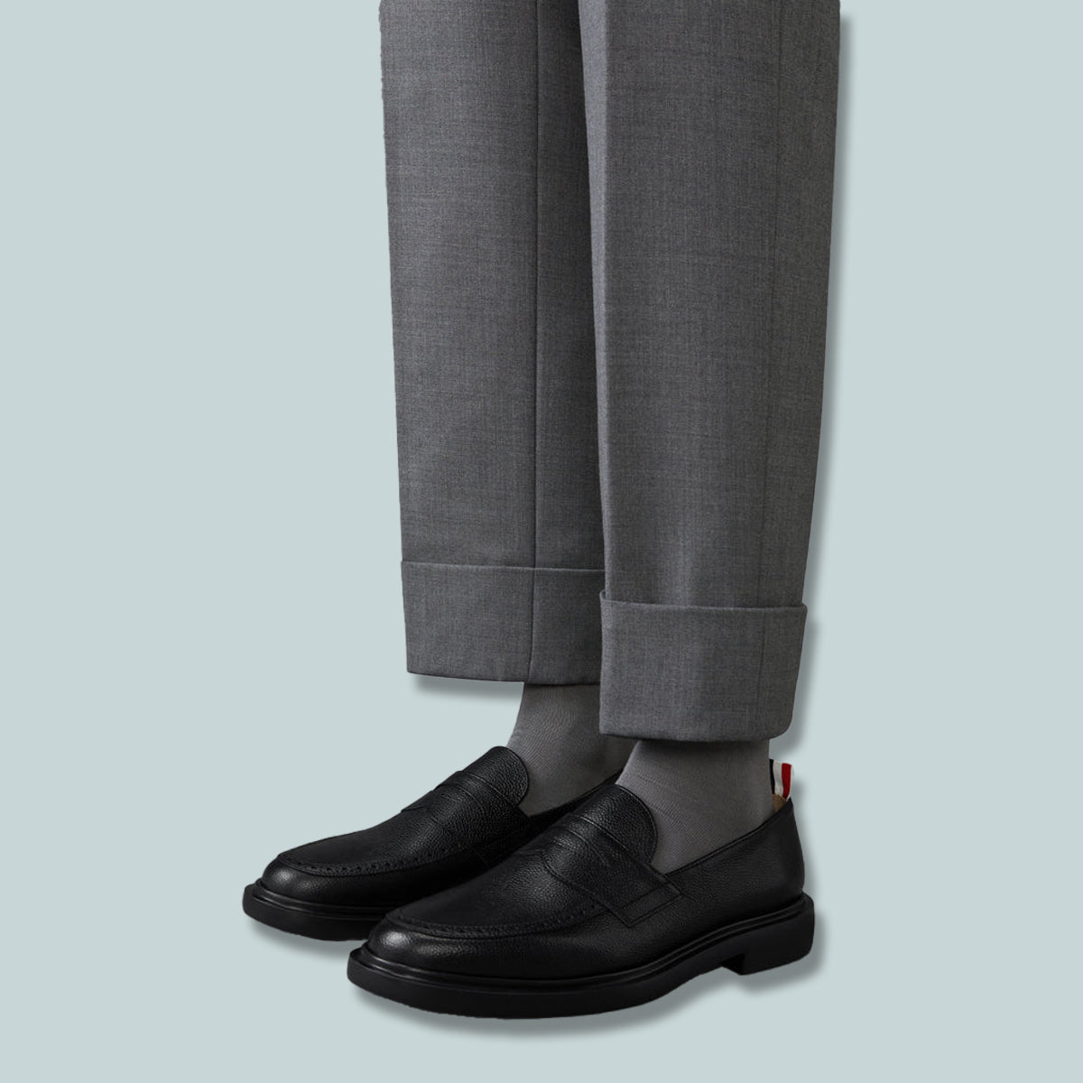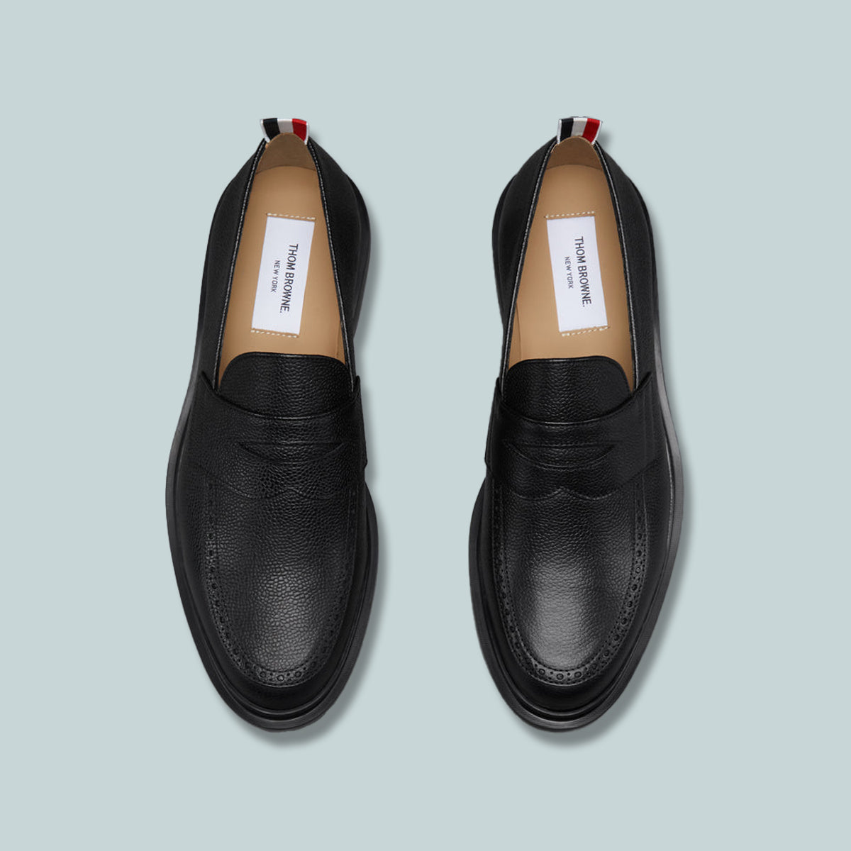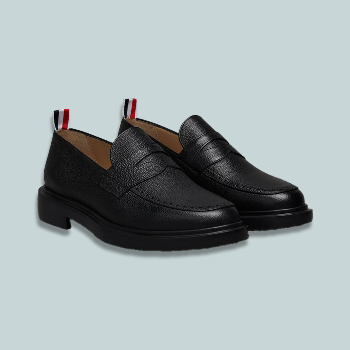 Pebble Grain Lightweight Rubber Sole Penny Loafers Black