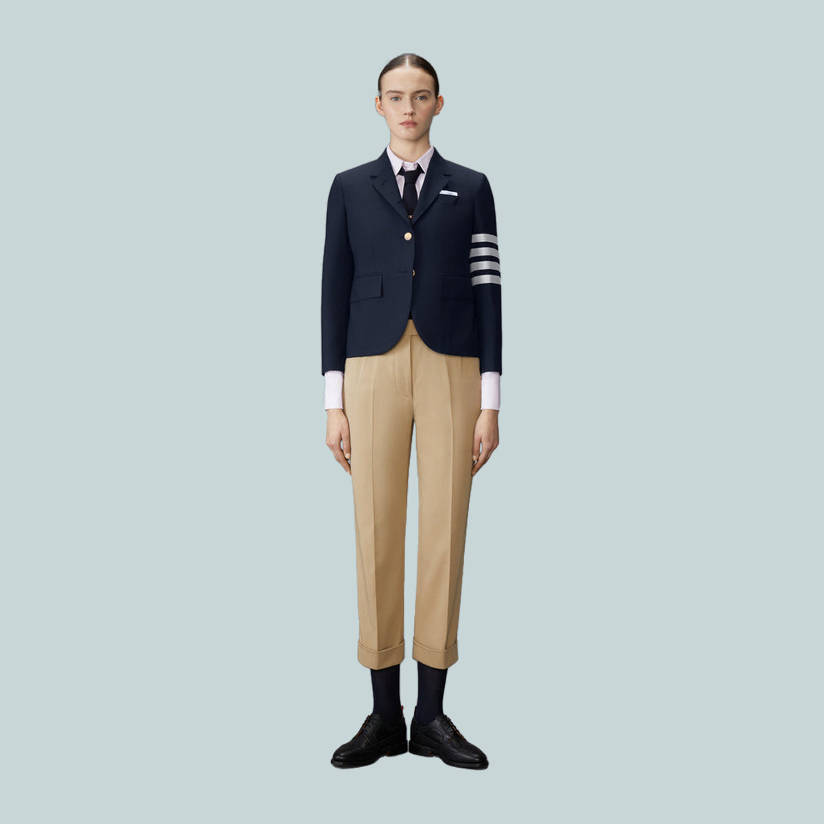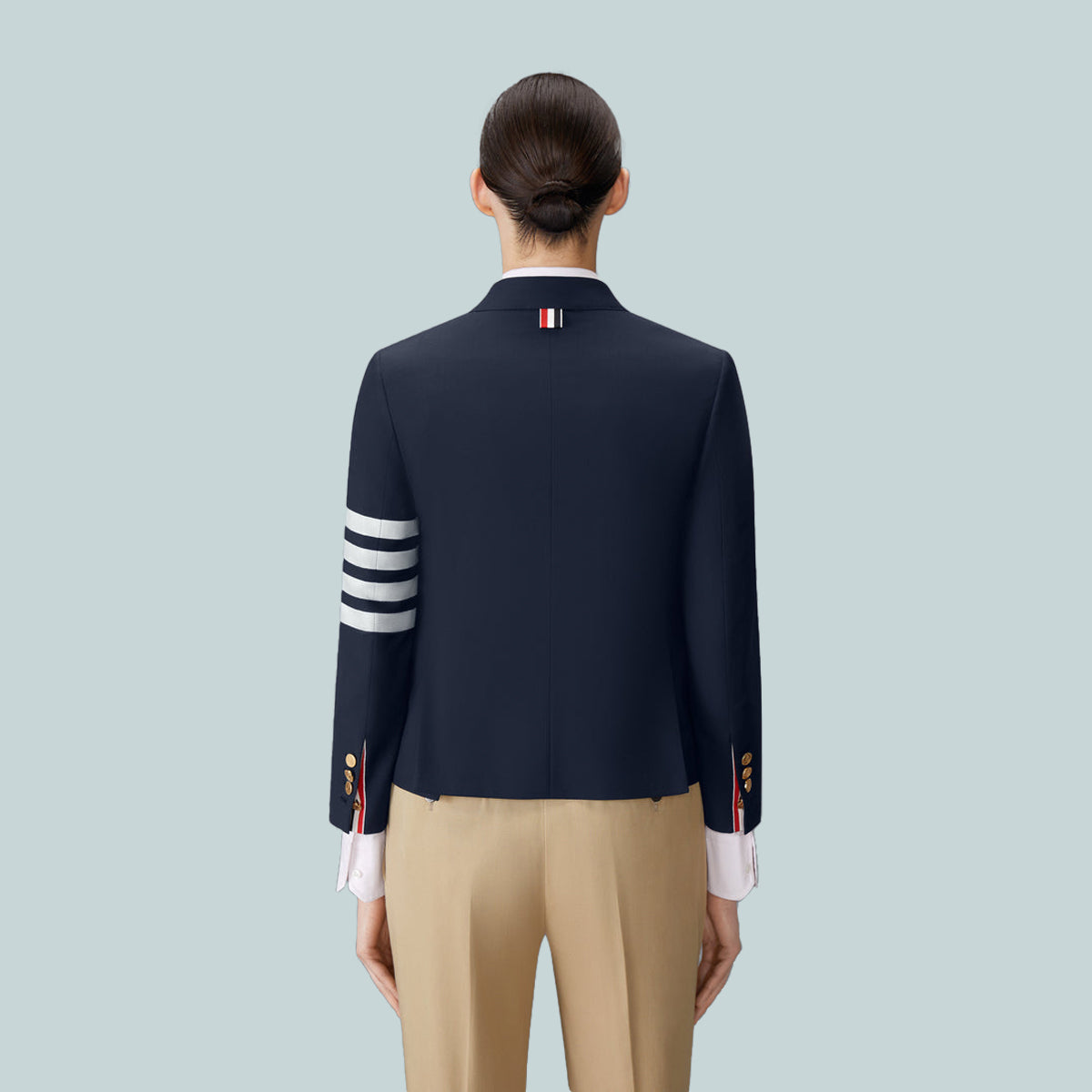 Buttoned cuffs with signature striped grosgrain trim