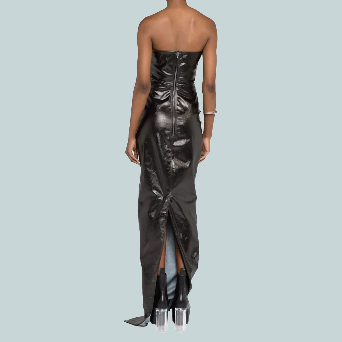 Rick Owens prong gown in black coated stretch denim